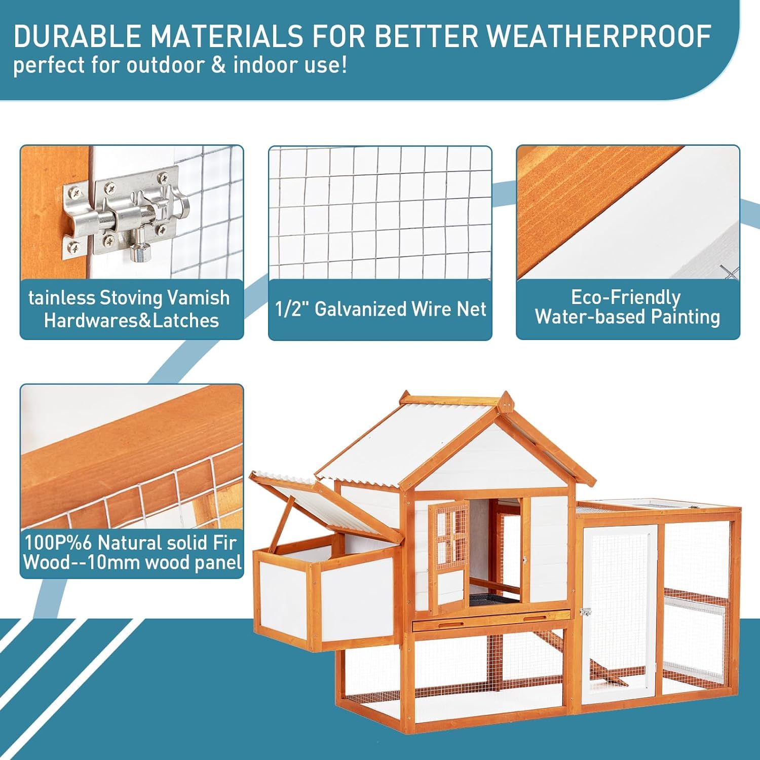 High-Quality Material - The walkin chicken coop is made from 100% natural solid fir, eco-friendly water-based paint and galvanized wire mesh. That can withstand rain, snow, wind and other bad weather.