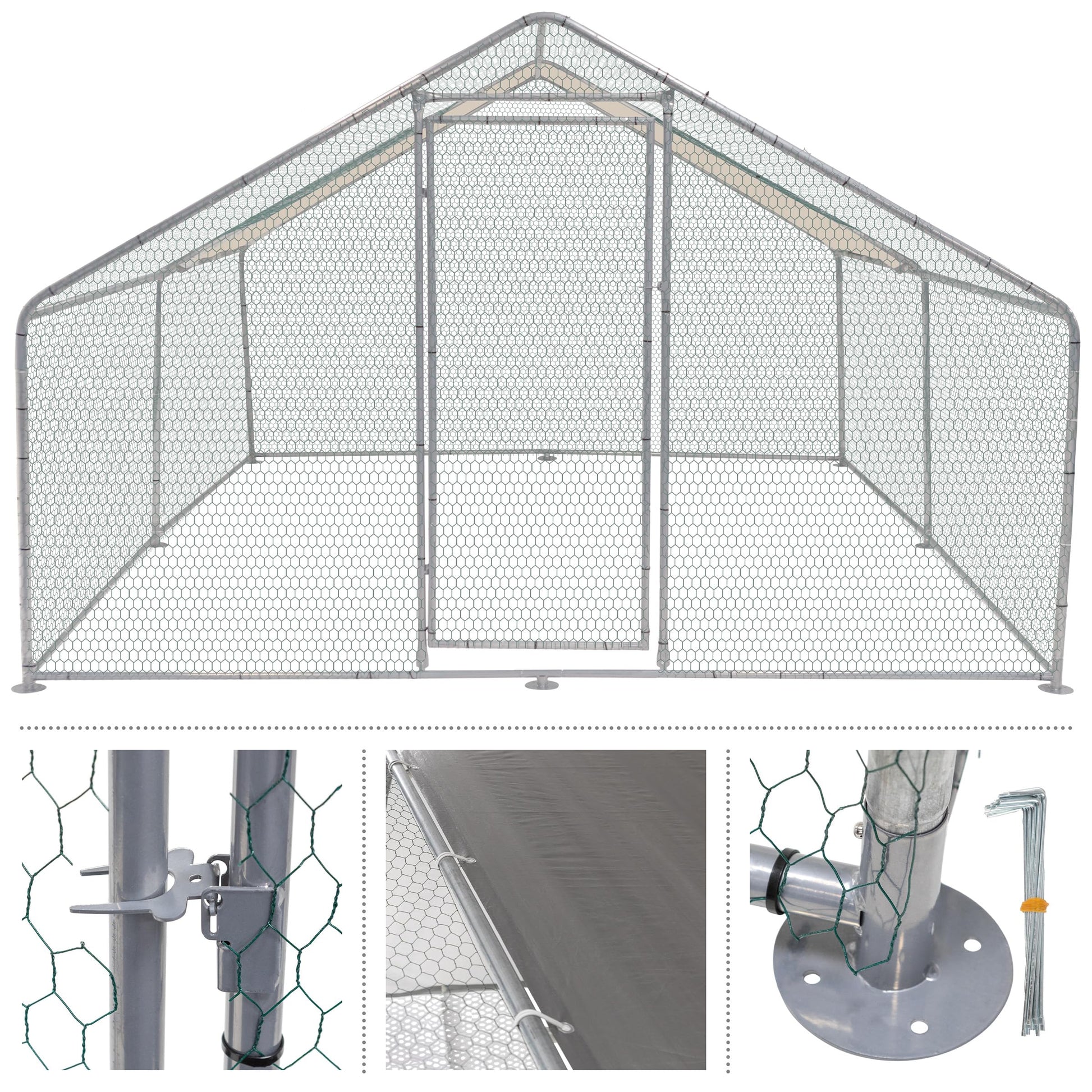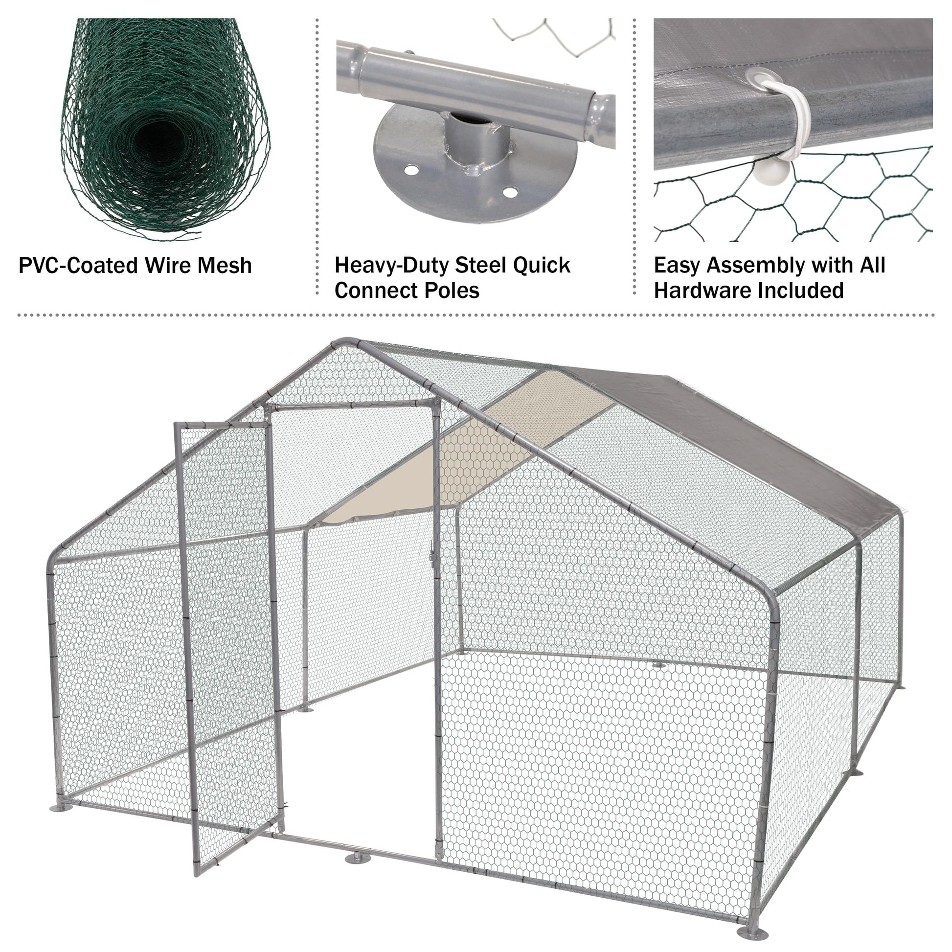LOCKABLE DOOR - The 5.83-foot-tall door on this chicken pen features a latch and steel ties, keeping your animals safe from predators while outside. The walls are made of nylon-coated wire mesh that is sturdy enough to keep your pets safely contained.