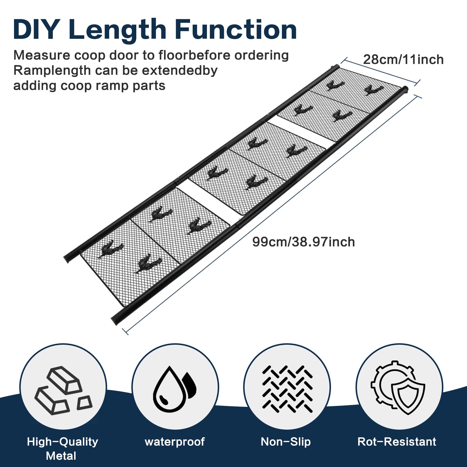 【Chicken Coop Ramp】: The Quality metal chicken coop ramp is suitable for indoor or outdoor chicken coop use and can be used together with the chicken coop door. Very suitable for chickens or duck with foot problems or inability to fly.It's a beautiful coop accessory