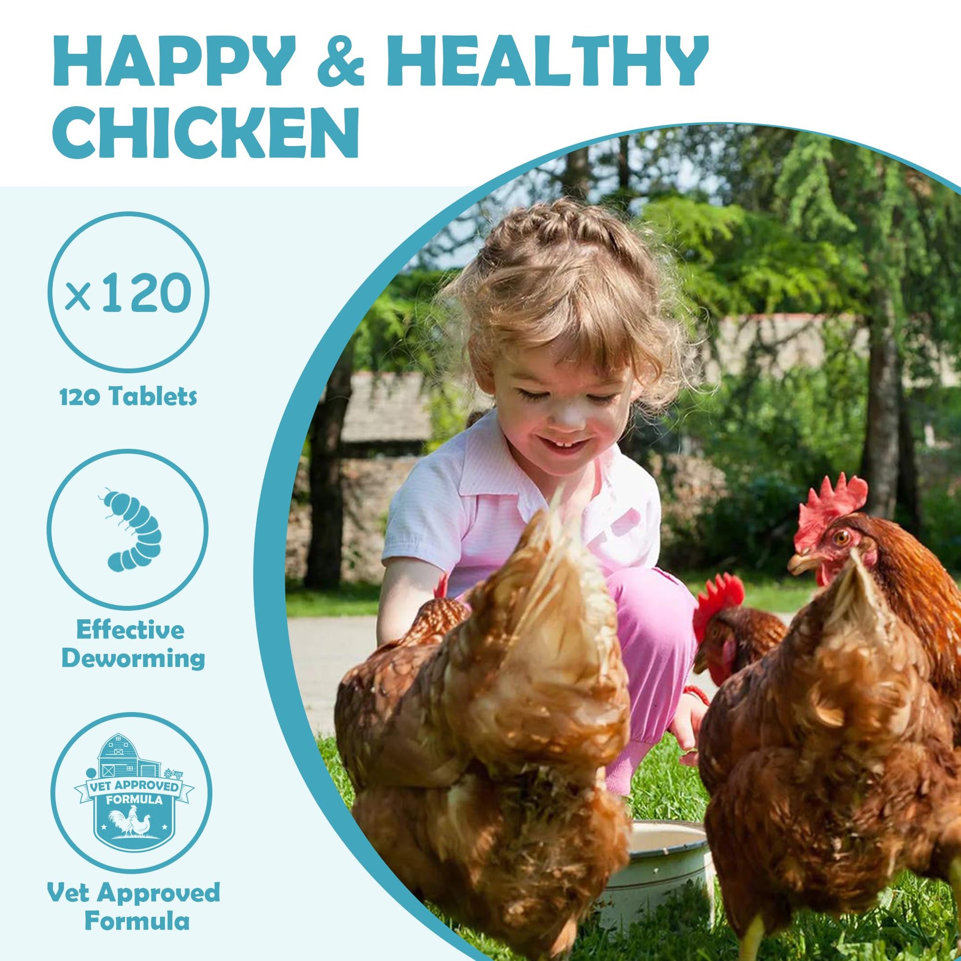 Chicken Dewormer - 120 Tablets All-Natural Formula, US-Made Chicken Dewormer Supplies For All Ages and Sizes to Relieve and Prevent Worms in Laying Hens, Chicks, Roosters, Turkeys, and Other Poultry