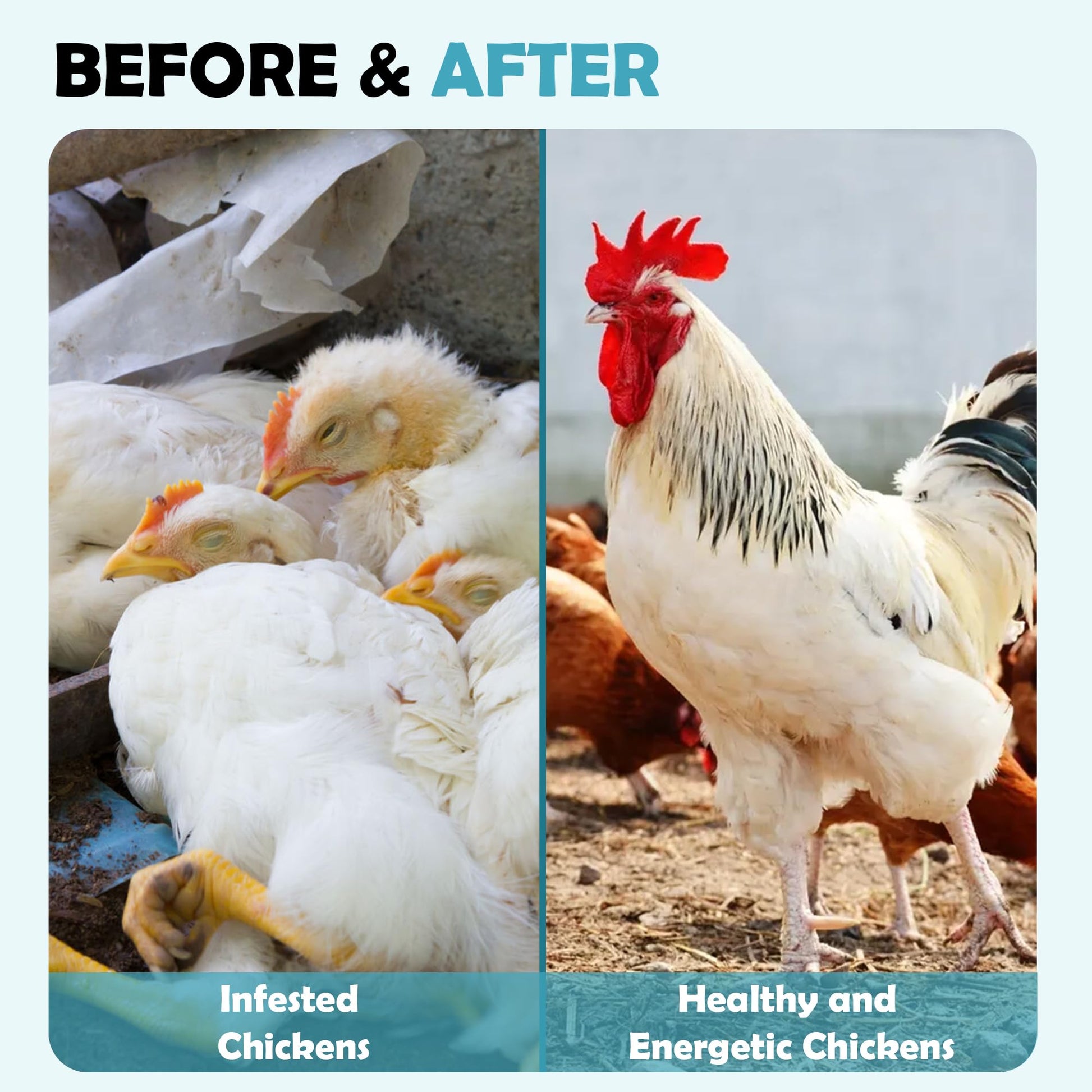 Suitable for All Poultry: Effective for all chicken breeds, ages and sizes. Adult chickens/roosters for 1 tablet and chicks for half tablet, repeat after 6 days to ensure adequate treatment