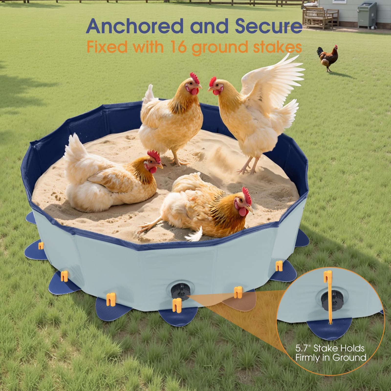 š”ļø Built to Stay UprightāNo Collapsing Walls: Crafted from tough, heavy-duty PVC with reinforced sides that hold shape under pressure. Whether it's pecking, flapping, or chicken pile-onsāthis tub wonāt fold.