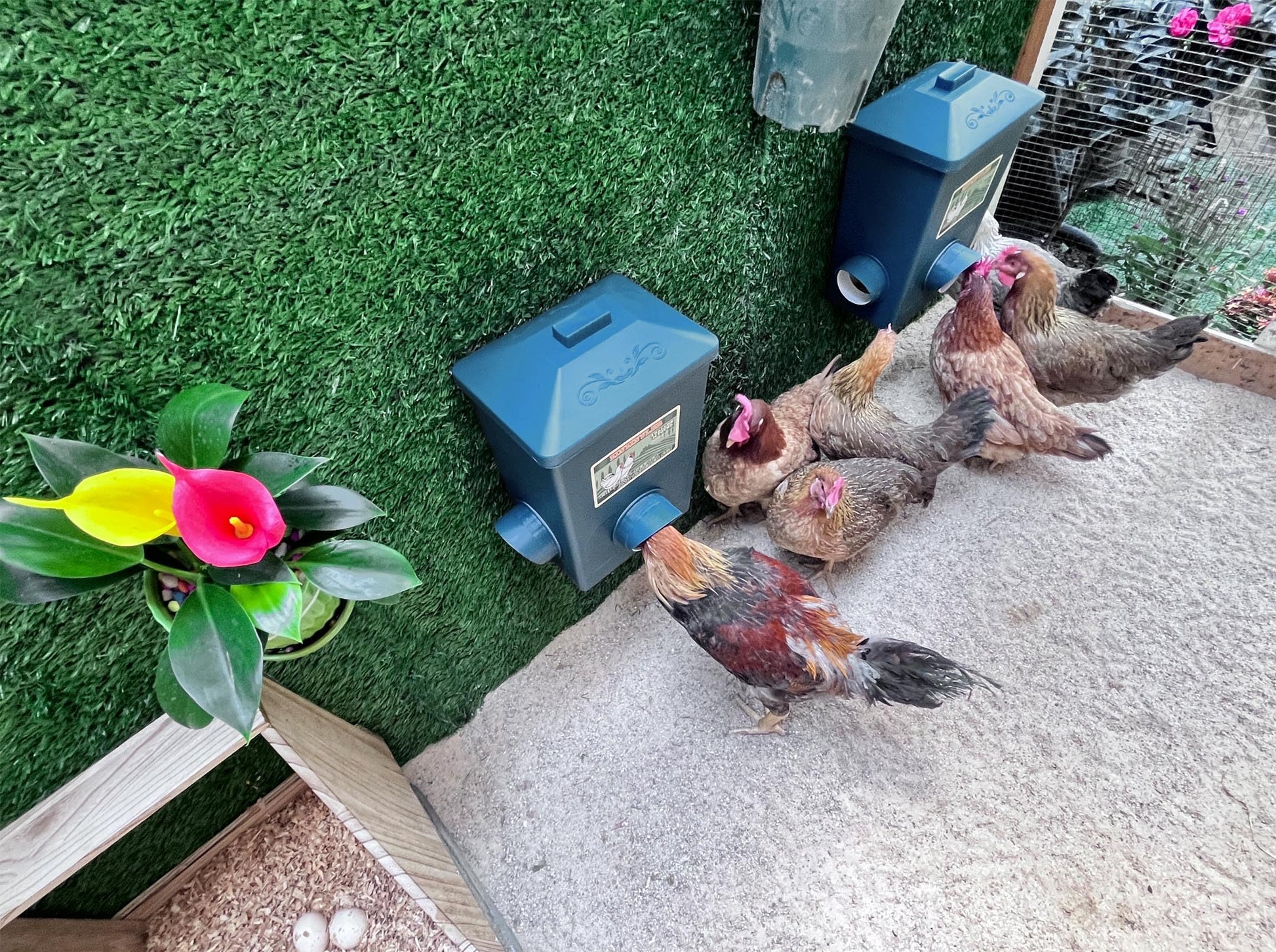 Chicken Feeder and Chick Feeder set- Our automatic chicken feeder is the ideal choice for poultry owners. Each feeder holds up to 16 pounds of feed (2 feeders totaling 32 pounds), making it especially convenient for busy owners who can't frequently visit their chicken coop. These large-capacity automatic feeders ensure your chickens always receive adequate feed and are perfect for long-term use with multiple birds.