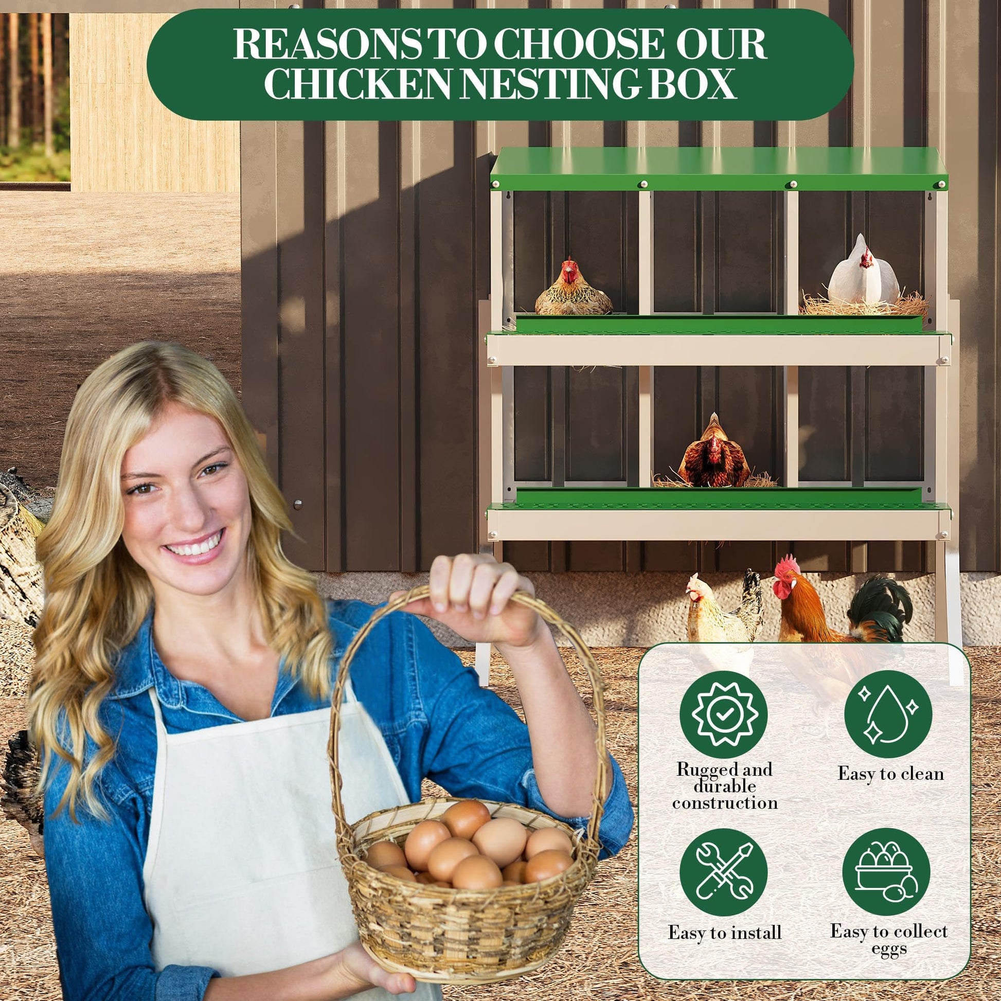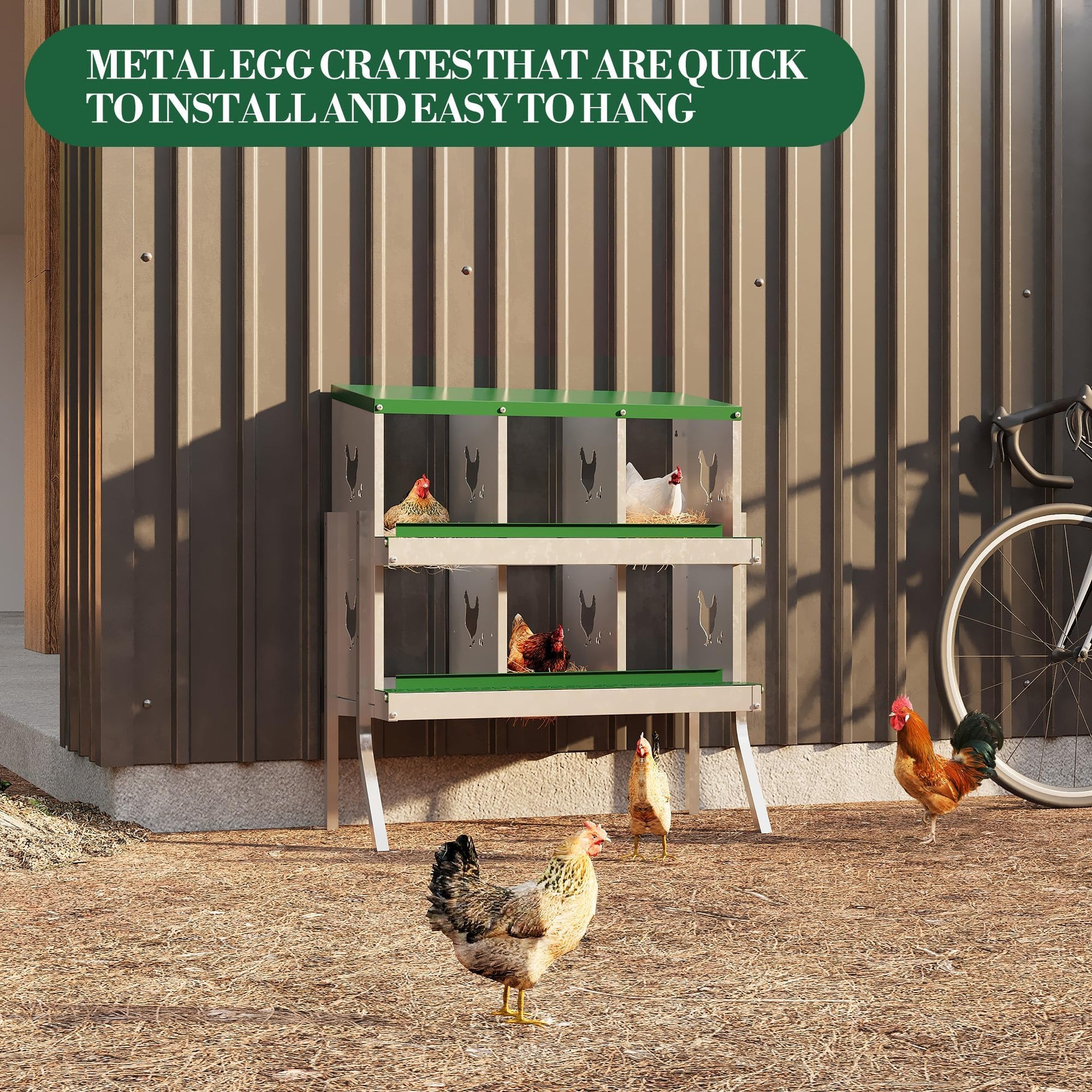 【DURABILITY AND CONSTRUCTION】: Built to last, our nesting boxes are crafted from heavy-duty galvanized steel that withstands harsh outdoor conditions. Resistant to rust, this robust chicken nesting box offers a stable and secure environment for your poultry, ensuring long-term reliability.