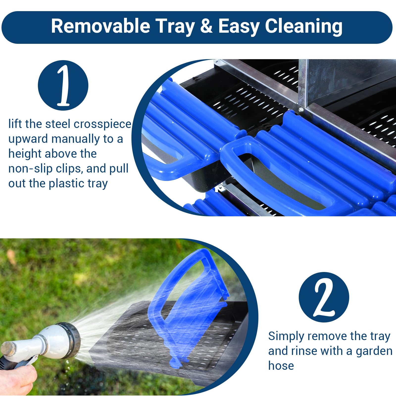 [EASY TO CLEAN DESIGN] Maintaining a hygienic environment for your hens is essential, and our chicken laying boxes is designed with cleanliness in mind. The bottom features numerous small holes to prevent water retention, and the removable trays make cleaning a breeze. Simply take out the trays, rinse them with water, and replace them for a fresh start. Ensure your chickens have a clean and comfortable space every day, helping to promote their health and egg-laying potential.