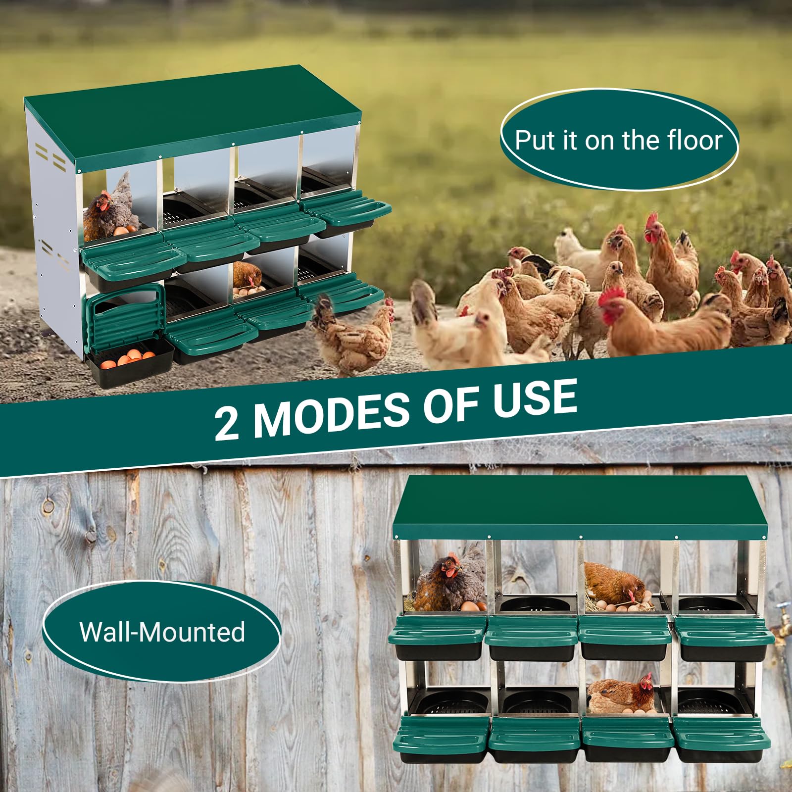 [EASY TO CLEAN DESIGN]our nesting boxes for chicken are designed with cleanliness at the forefront. The bottom of each box features numerous small holes that prevent water retention, promoting a dry living space for your hens. Removing the trays for cleaning is effortless—simply take them out, rinse, and replace. This easy-to-clean design ensures your hens have a fresh, hygienic space daily