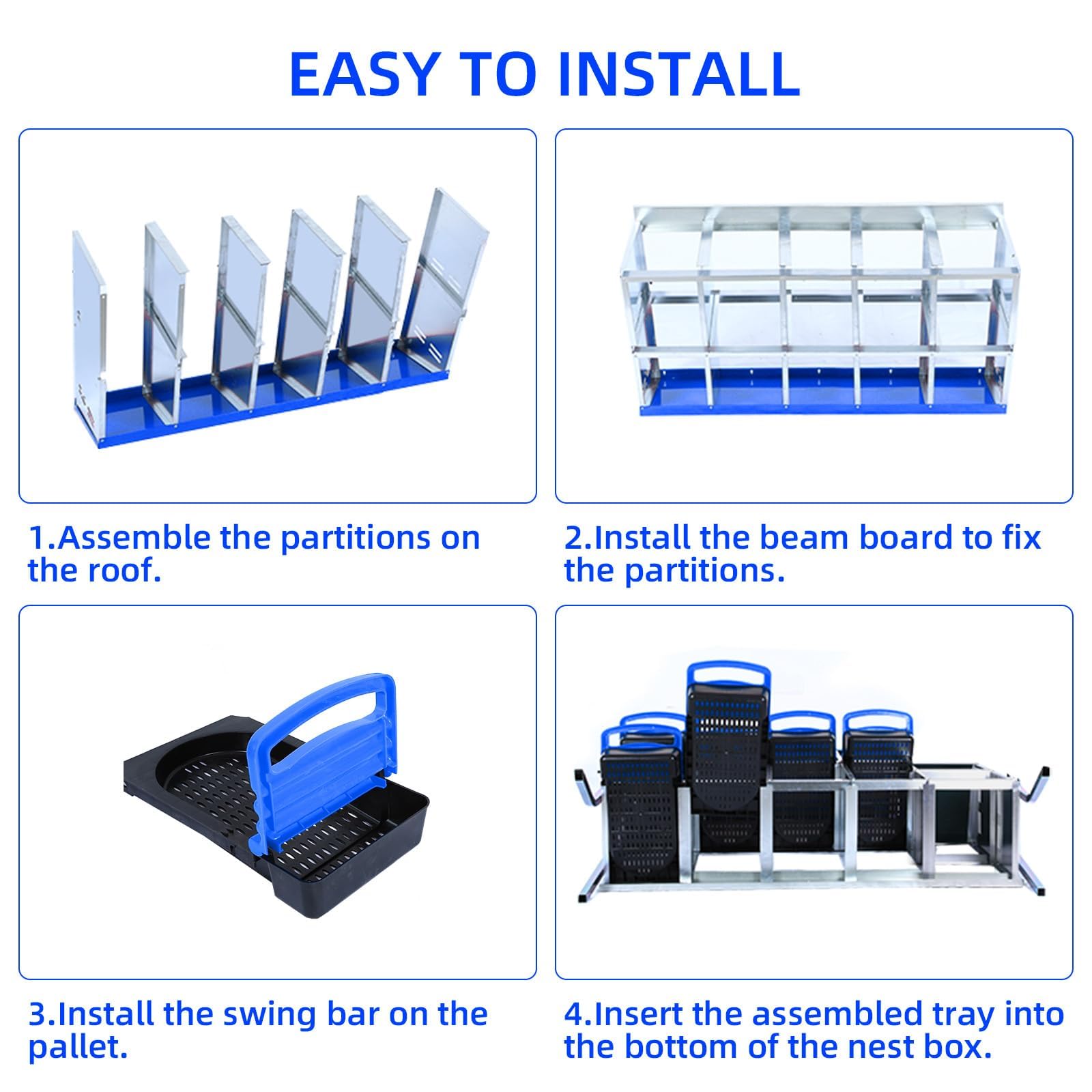 【Efficient Egg Collection】--The unique inclined design of the nesting box ensures the eggs roll smoothly into the collection tray for easy retrieval, without reaching into the nesting area, ensuring they remain clean and intact.