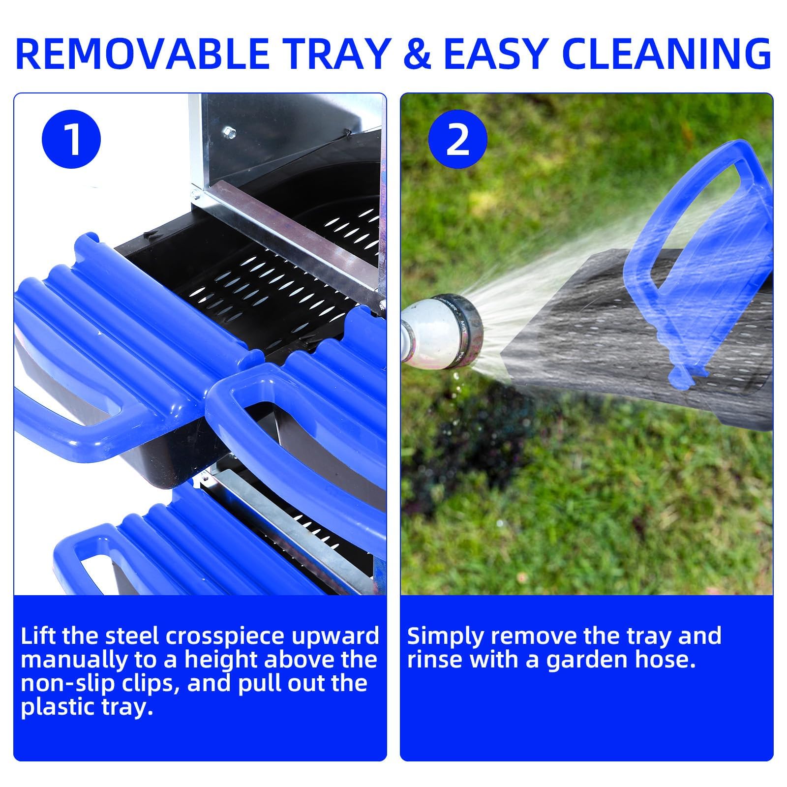 【Easy to Clean & Maintain】--The removable tray allows for quick and efficient cleaning, making it easy to remove any mess. Small holes in the bottom prevent water from pooling and allow debris to easily fall out of the mesh tray. Our nesting box offers a clean, comfortable, and secure space for hens to lay eggs.