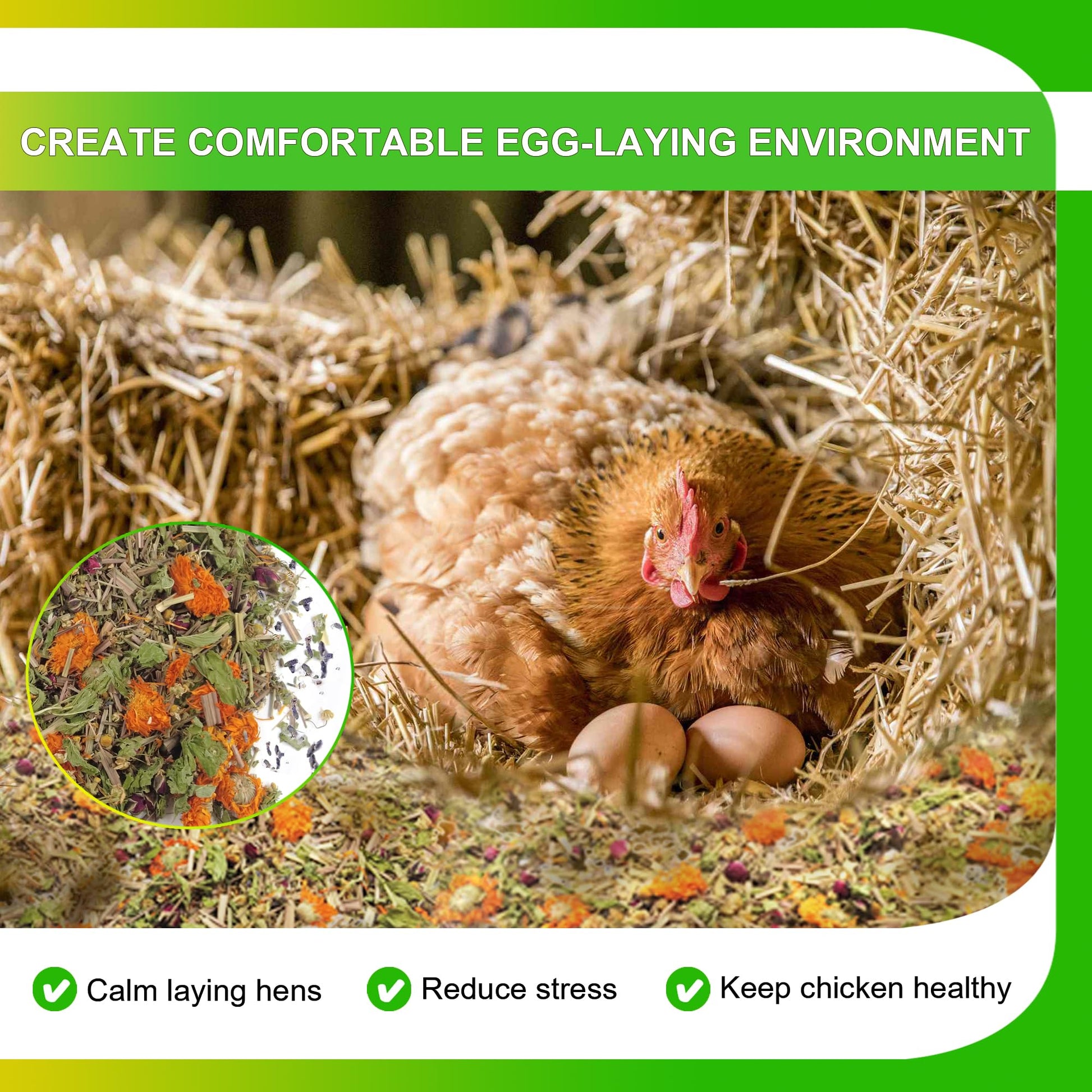 100% Natural Chicken Nesting Herbs: The hen feed supplement uses natural dried flowers and herbs, carefully selected and naturally air-dried, safe, non-toxic, edible and free from any chemical elements, your hens ducks or other poultry will enjoy it.