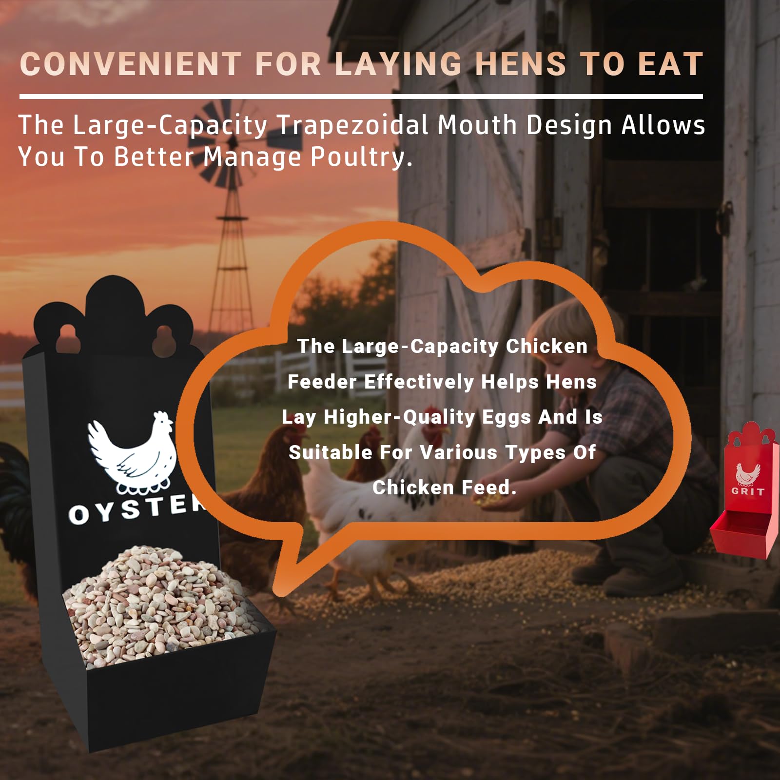 【Effortless Nutrition Management】 Designed for busy chicken keepers, this feeder holds ample oyster shells and grit to sustain your flock between refills. The thoughtful capacity means fewer trips to the coop, giving you more time to enjoy your chickens’ lively antics instead of constantly tending to their supplements.Patent Pending!