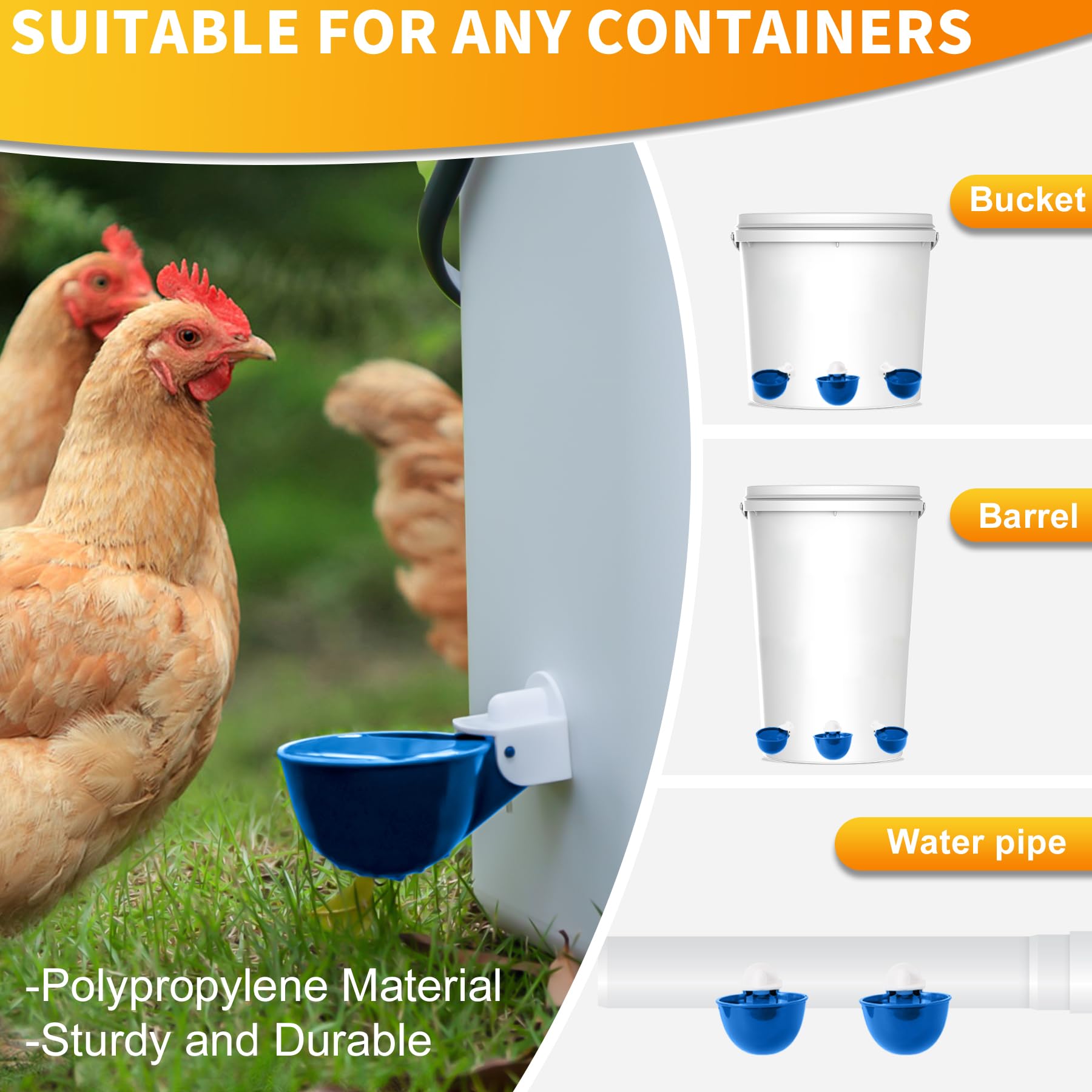 🐔NO Less Design: Each cup features a leak-free design that ensures a steady supply of water for your flock. Rubber sealing gaskets prevent leaks and ensure clean water is always available.