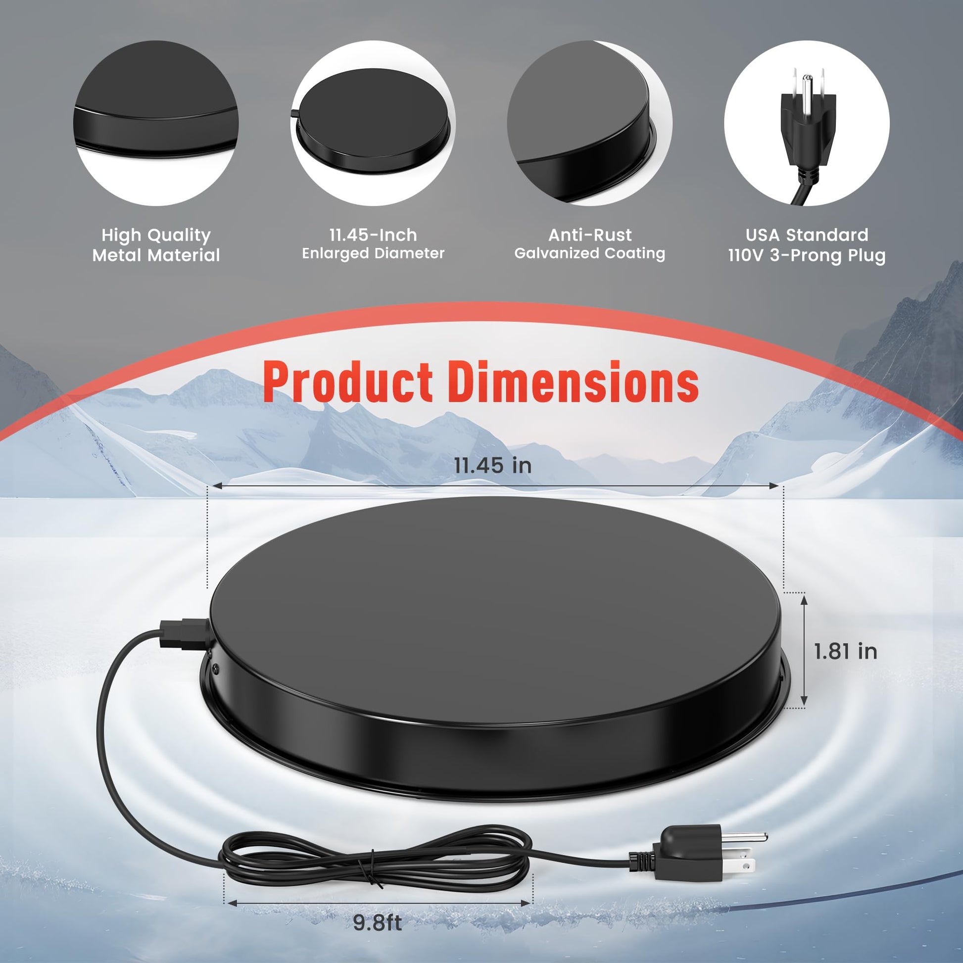 Safety & Durable Design: This heating base is constructed of galvanized steel for good heat conductivity. It includes a 9.8 ft power cord and three-prong grounded safety plug. The built-in heating element is designed to meet applicable safety standards and includes an additional thermostat to help promote efficiency and safety.
