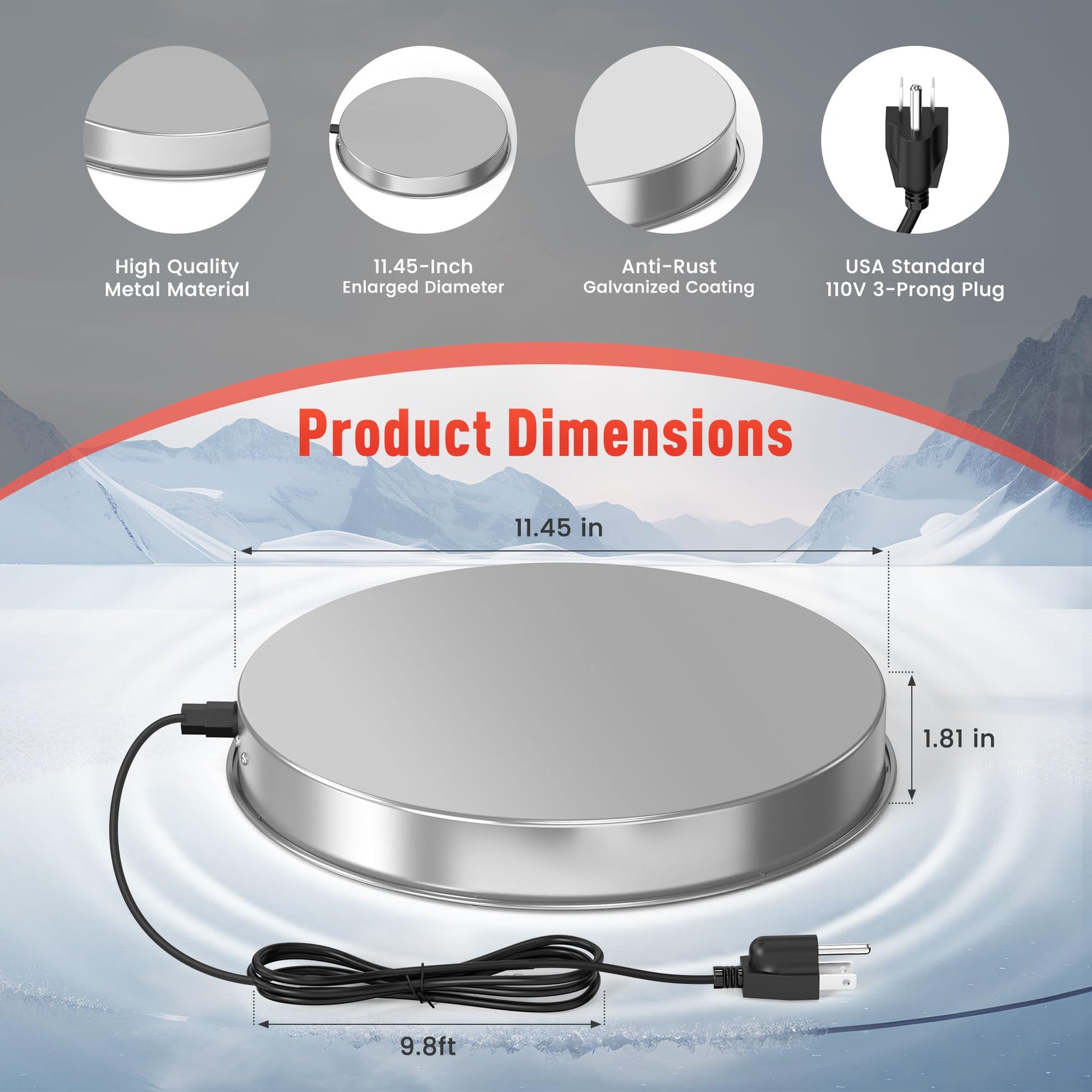 Safety & Durable Design: This heating base is constructed of galvanized steel with a high-density aluminum lining for good heat conductivity. It includes a 9.8 ft power cord and three-prong grounded safety plug. The built-in heating element is designed to meet applicable safety standards and includes an additional thermostat to help promote efficiency and safety.