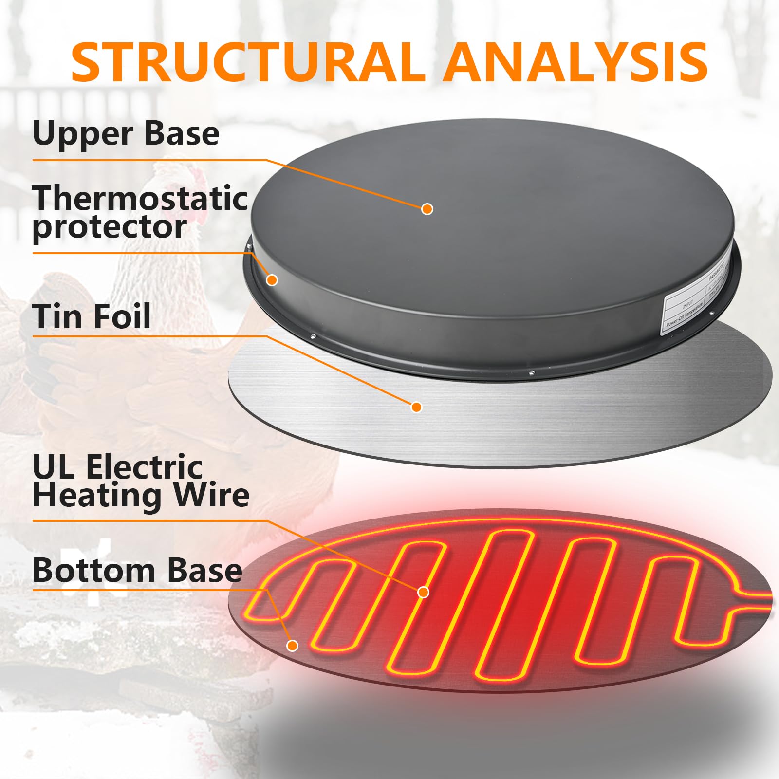 Chicken Water Heater for Winter - 15.35" Poultry Waterer Heated Base, 125W Drinker Heater Base with Thermostat to Prevent Water Freezing in Metal or Plastic Drinkers