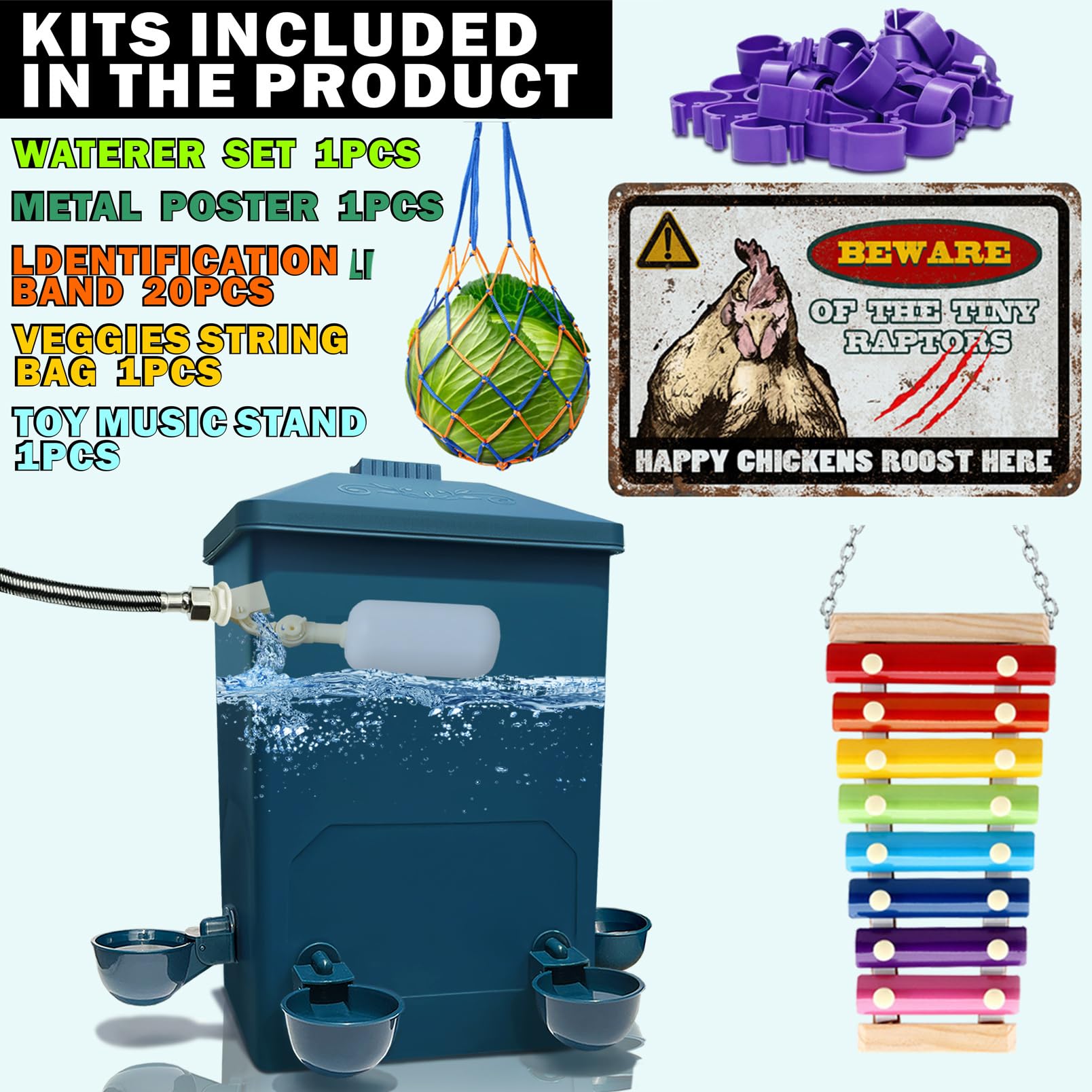 Chicken Waterer with Float Controlled Automatic Set, Chicken Coop Accessories - No Manual Water refilling Needed, 4 Gallon(Compatible with 5/8-inch and 3/4-inch Water Pipes, 60-inch Water Supply Pipe
