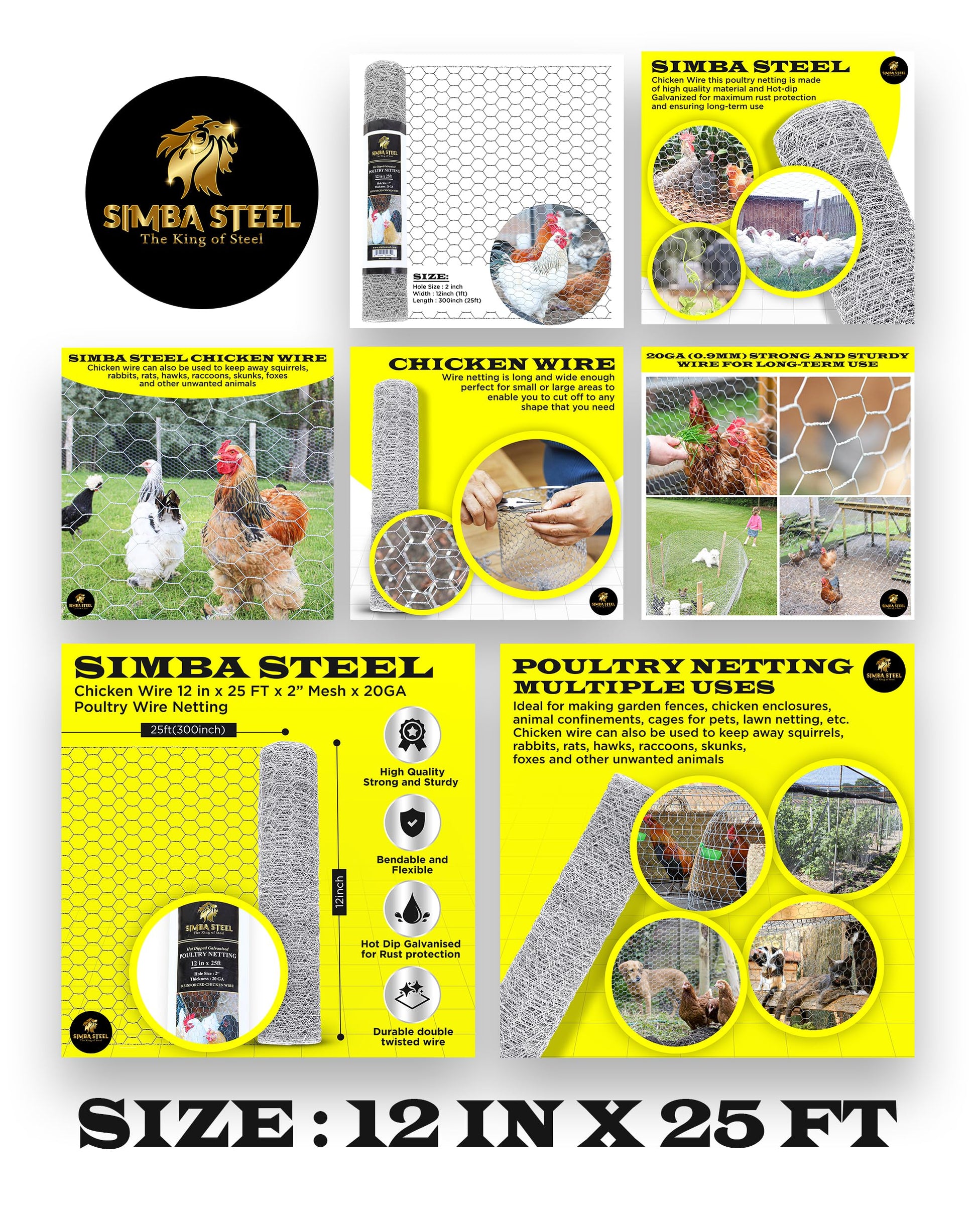 Durable Hexagonal Design: Engineered with a double-twisted hexagonal structure and reinforced for extra sturdiness, this chicken wire provides long-term durability. The evenly spaced design ensures reliable performance, making it an ideal solution compared to traditional galvanized fencing.