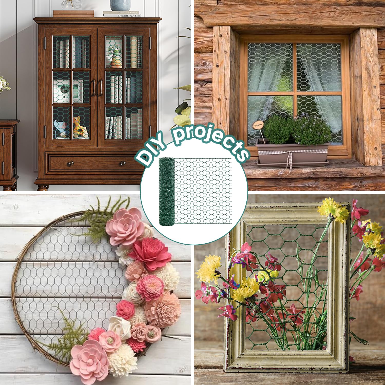 DIY creation and decoration: You can cut the wire mesh into any shape according to your needs, which is very suitable for making garden fences, chicken coops, pet cages, lawn nets, garden rabbit fences, etc; Meanwhile, you can use it for handmade creations such as jewelry stands, photo walls, Christmas wreath stands, lampshades, cabinet doors, and more.