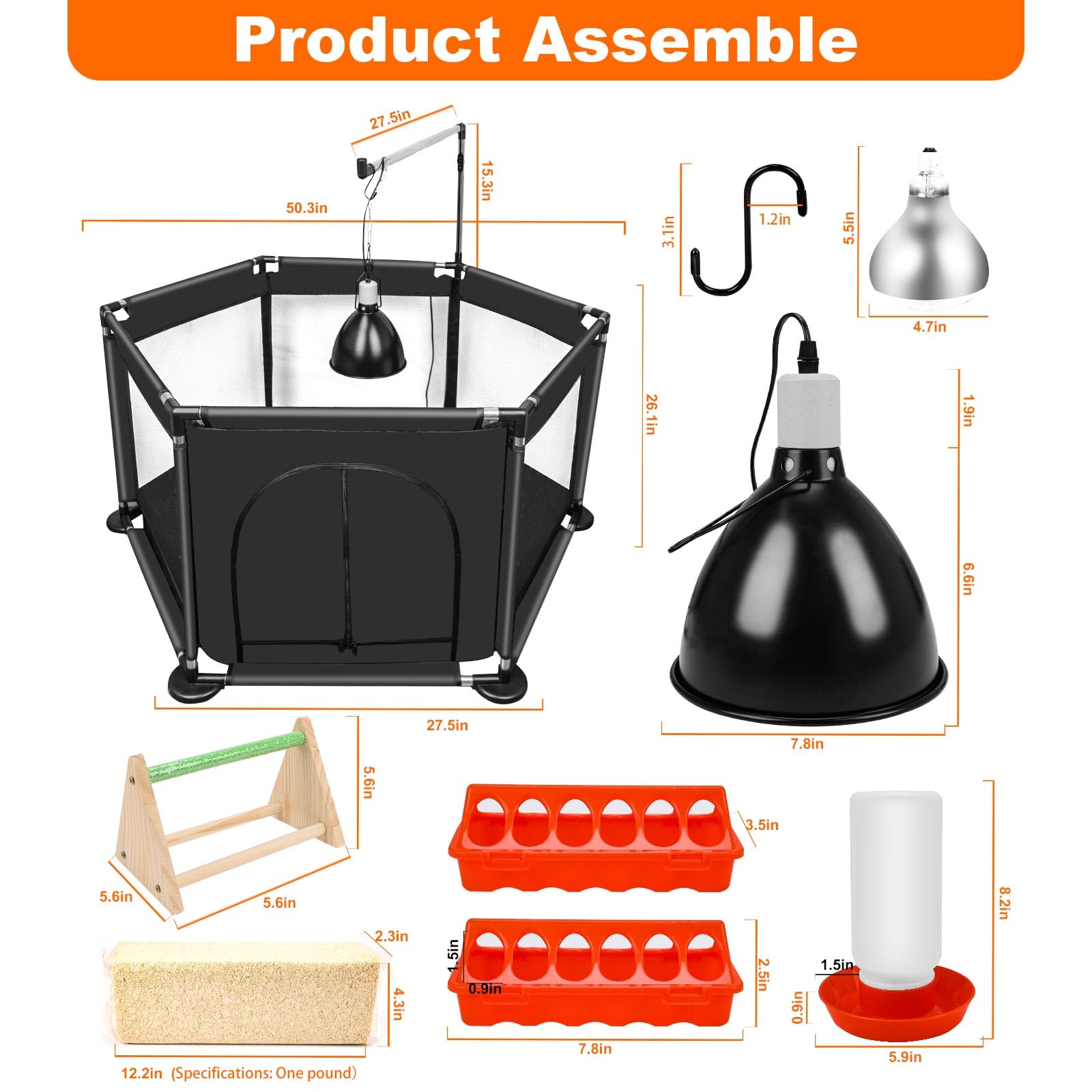 Quick Setup & Versatile Habitat: Featuring a lightweight, tool-free assembly design with lamp hanger, this portable enclosure sets up effortlessly indoors. Perfect for raising chicks, ducklings, and quail with adaptable space requirements.