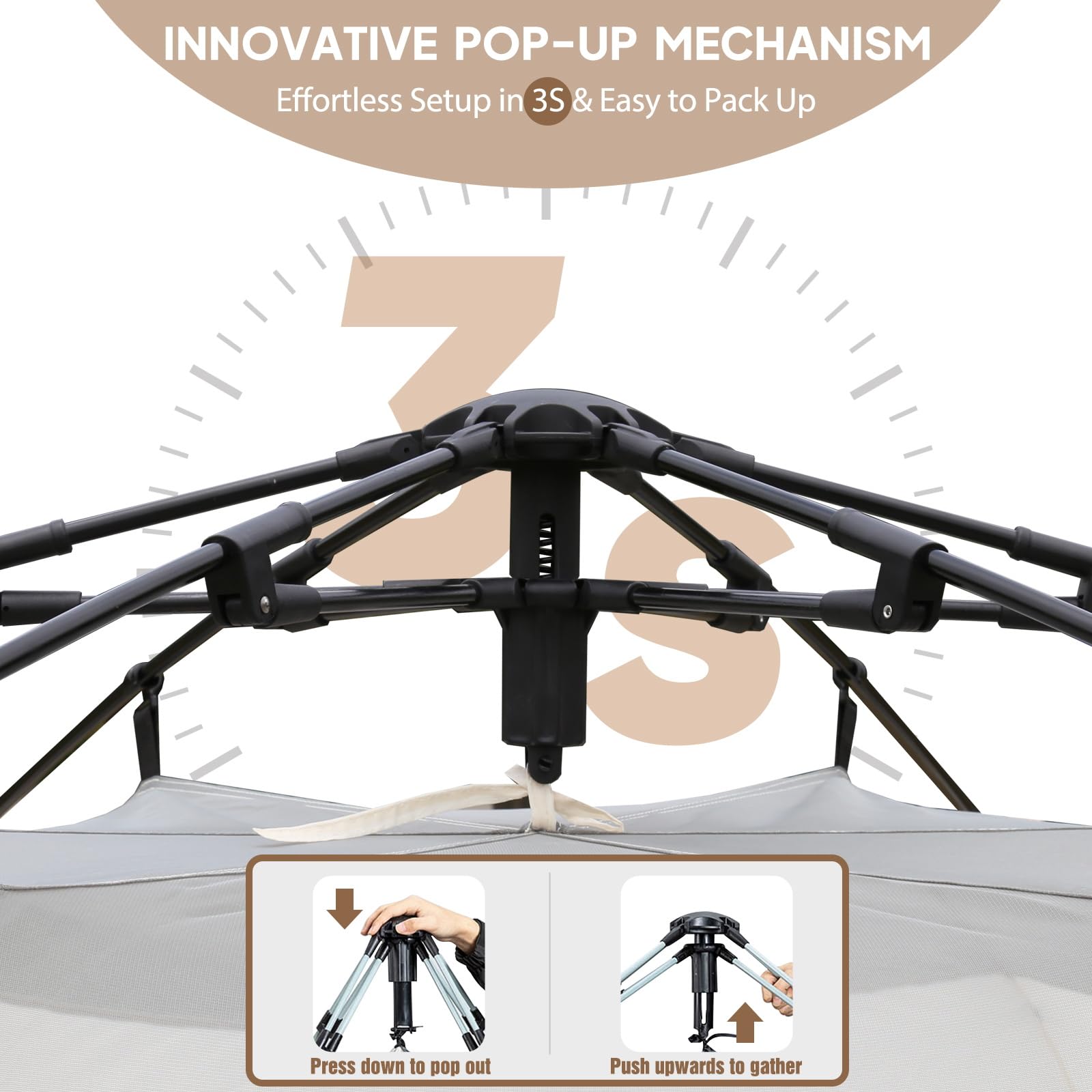 Effortless Setup for Seamless Camping Adventures: Say goodbye to the frustrations of complicated assembly processes. Your tent features an ingeniously designed inner structure that effortlessly springs into shape upon release. This innovative pop-up mechanism streamlines the setup process, allowing you to swiftly transform your campsite into a cozy retreat. Spend less time wrestling with poles and more time enjoying the great outdoors.