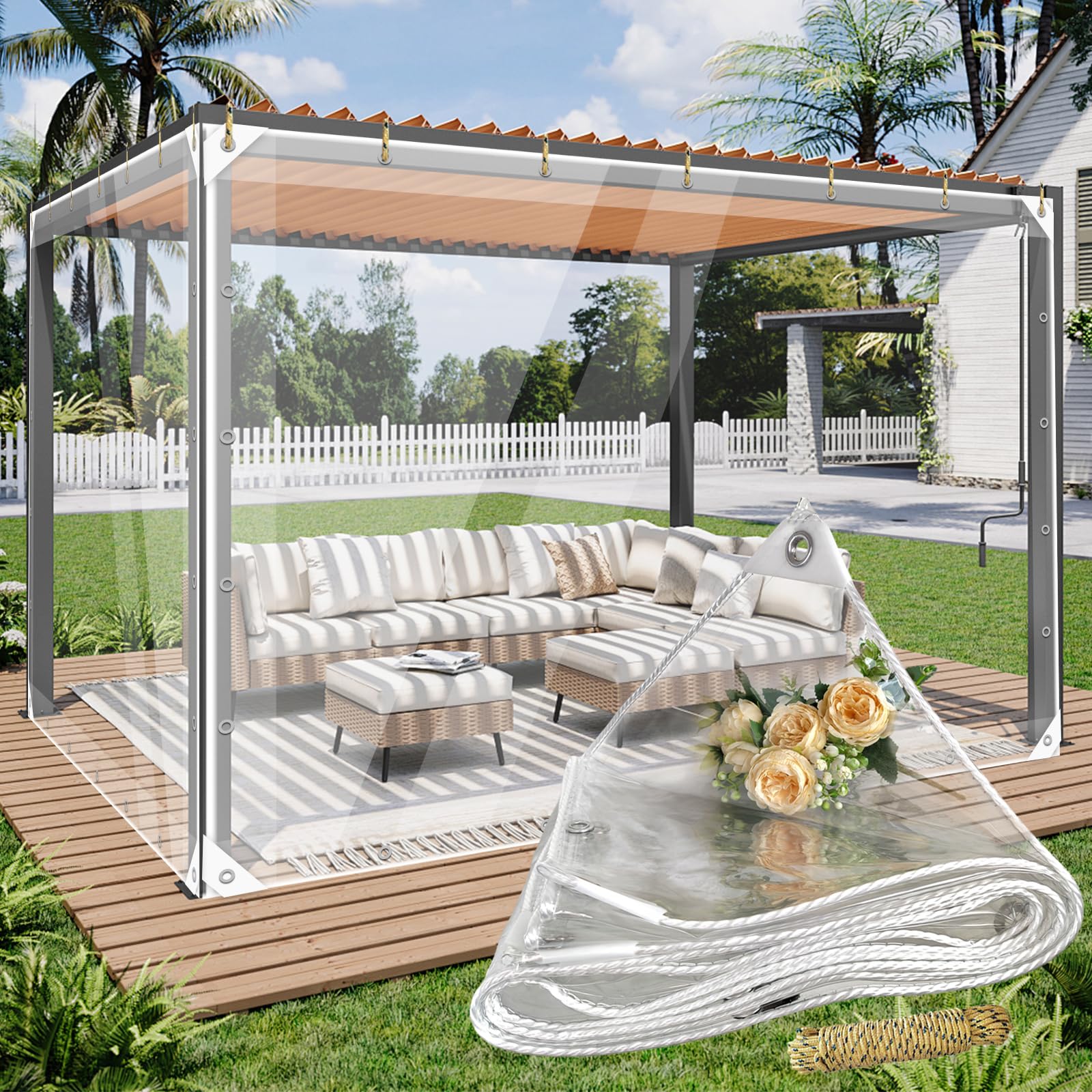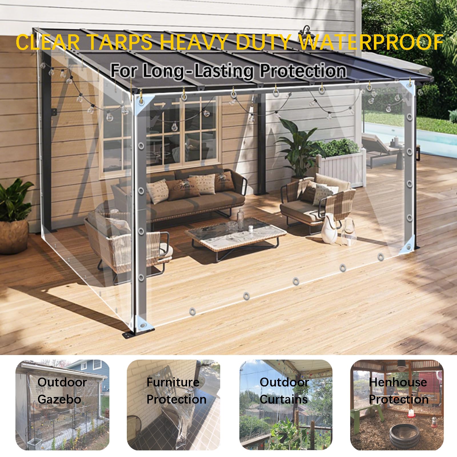 【Clear tarps with grommets】For: Greenhouse, Lawn, Tent, Roof, Terrace, Winter Garden, Swimming Pool, Farm, Garage, Courtyard, Plant Insulation, Pergola Cover, Camping Tent, Waterproof Balcony Tent, Dust Cover, Car Cover, Waterproof Household Tarpaulin. Can Be Used Indoors and Outdoors.