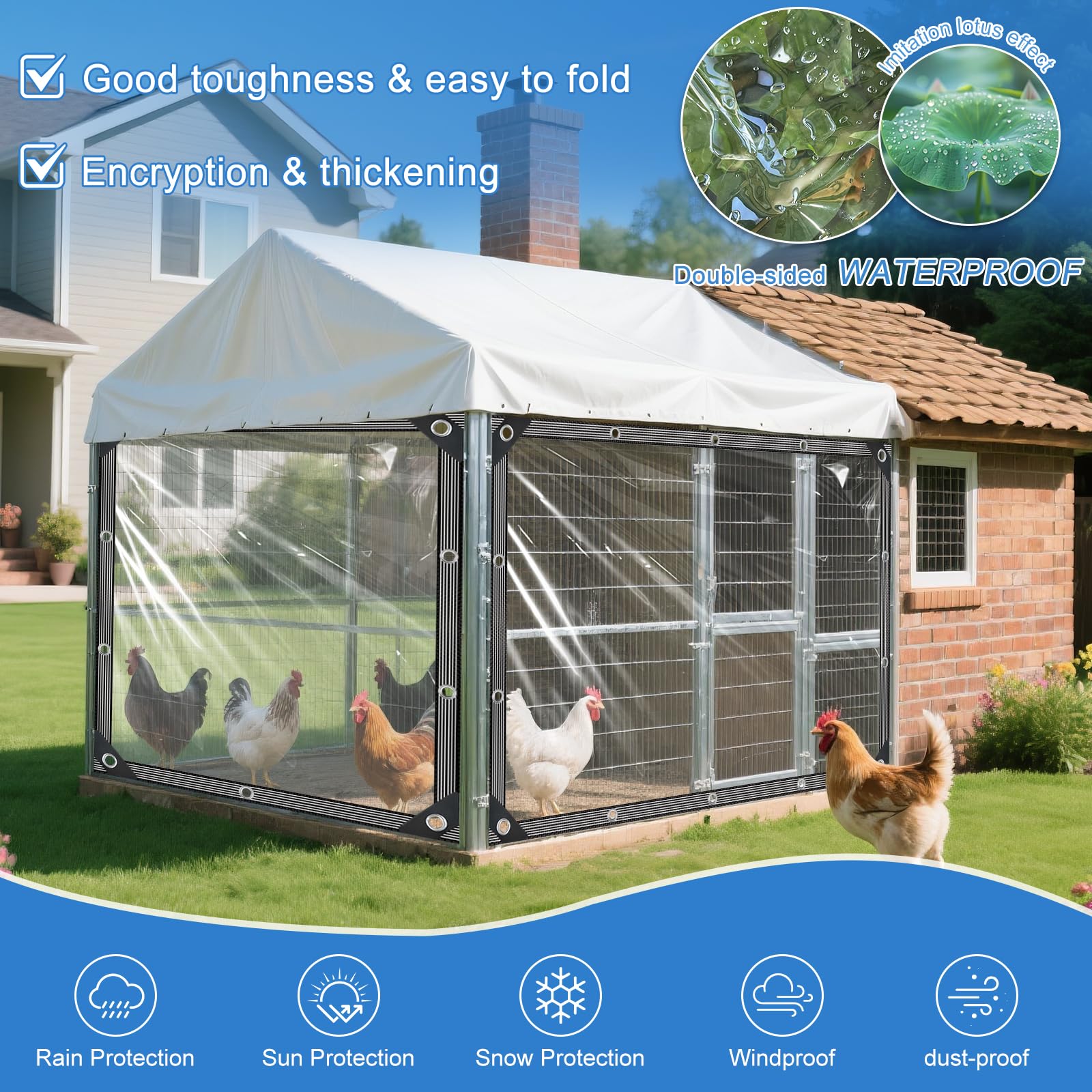 【Multi Purpose】This clear tarp for patio, greenhouses plant, porch enclosure, chicken coop cover, outdoor porches, garden, pergola rain, etc. The colour of the rope supplied is delivered at random, which allows easy and quick installation and fastening of the clear tarps.