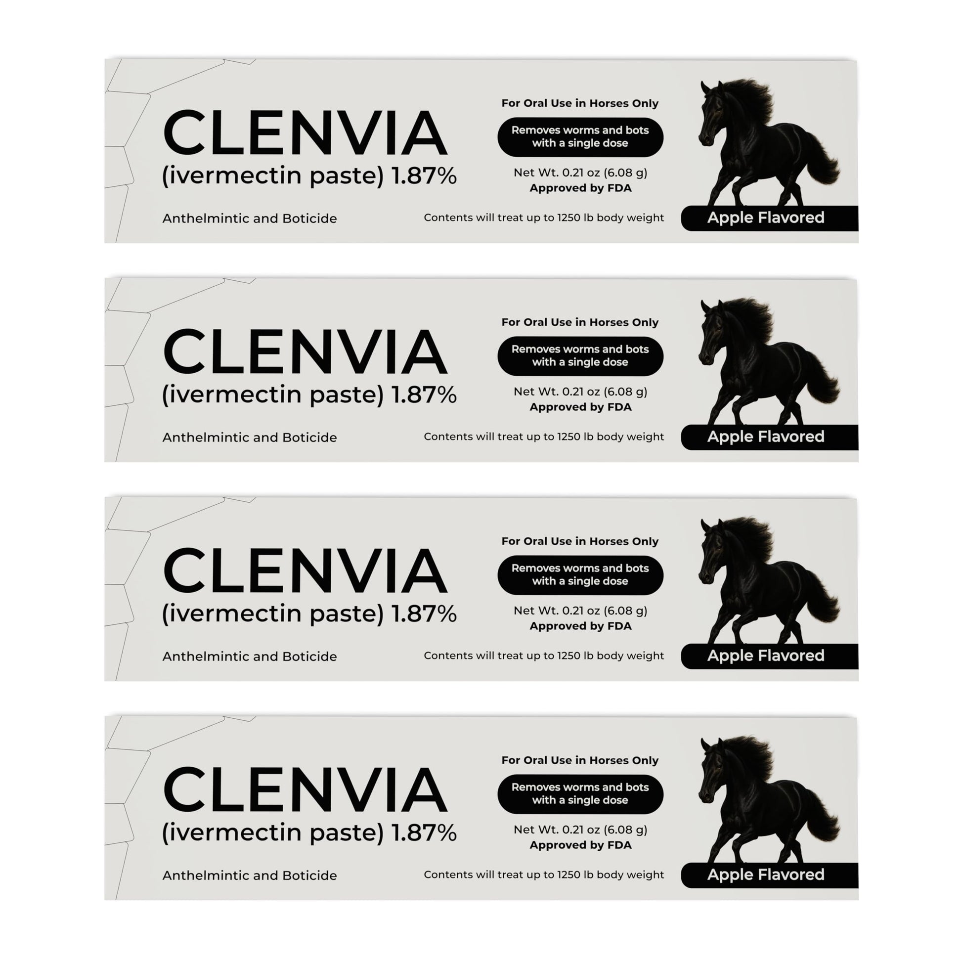 CLENVIA Horse Paste 1.87% – Apple Flavored Wormer – 6.08g Tube – Treats Up to 1250 lb (4 Pack)
