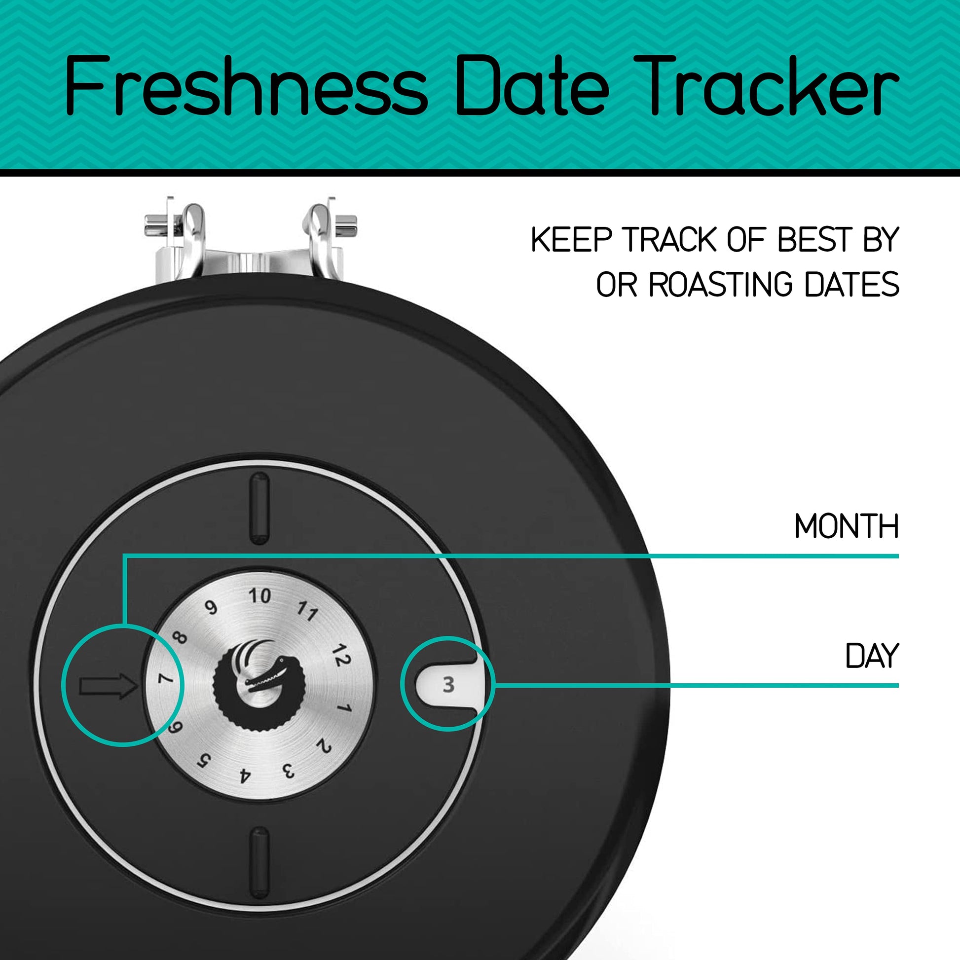 Built-In Date Tracker : Never guess freshness again with the easy-to-use date tracker to monitor your coffee’s peak flavor period and ensure every brew tastes like day one. In addition, the stainless steel coffee Measuring scoop can be easily hung on the side of the coffee jar for easy use