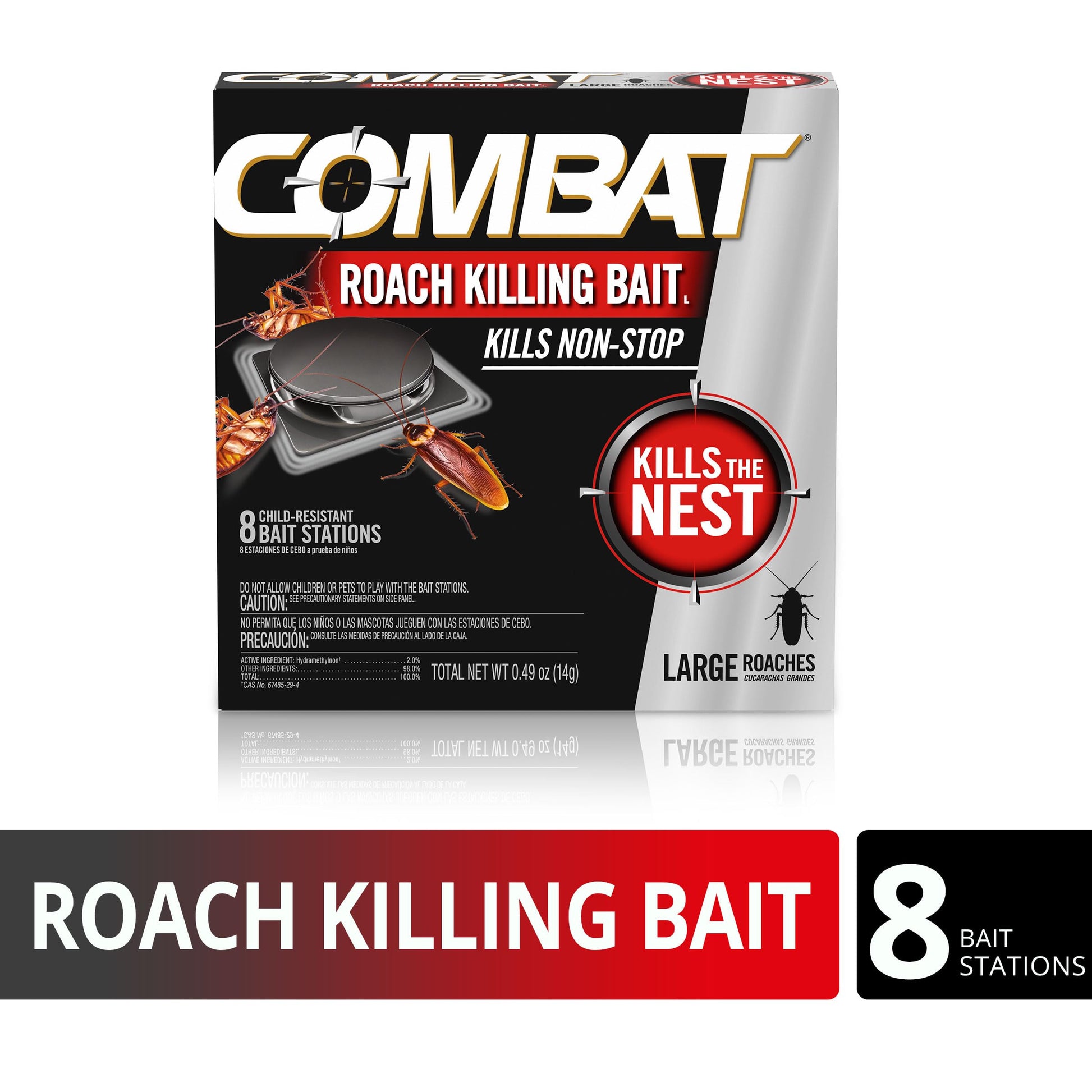 Combat Roach Killing Bait, Roach Bait Station For Large Roaches, Kills The Nest, Child-Resistant, 8 Count,Insects