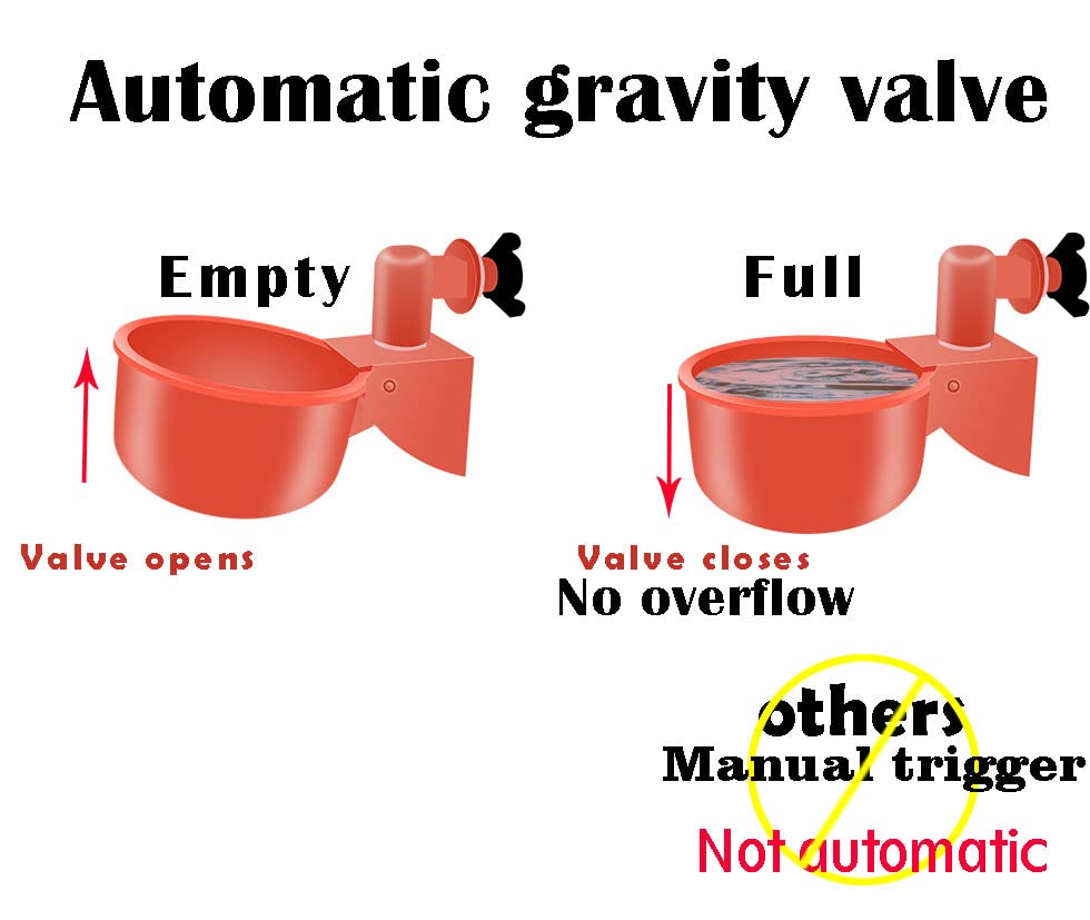 Installation method: use a small size hole saw to cut holes on the top of the bucket and install the buoyancy water valve. Use a large hole saw to open holes at the bottom of the bucket to install the bucket Bulk Fitting. Apply glue to the PVC water pipe and connect all automatic poultry drinking cups (note that all chicken drinking cups must be horizontal and not inclined, otherwise water will leak). Then connect the joint of PVC pipe and bucket. finish!Enjoy it, your chickens
