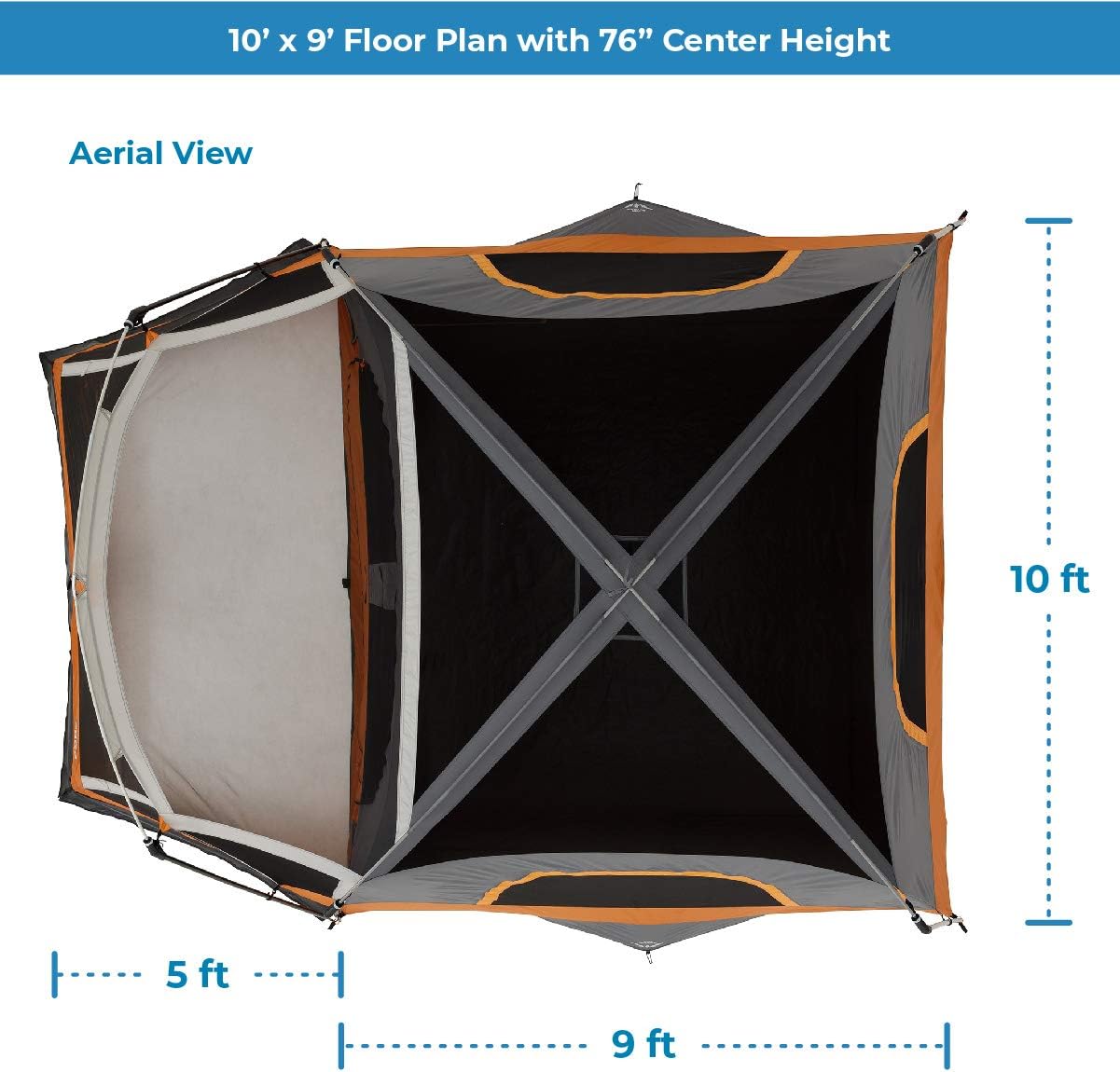 SLEEPING CAPACITY: Measures 10 by 9 feet with a 72-inch center height; fits two queen-size air beds; comfortably accommodates 3 people with gear or up to 6 people without gear