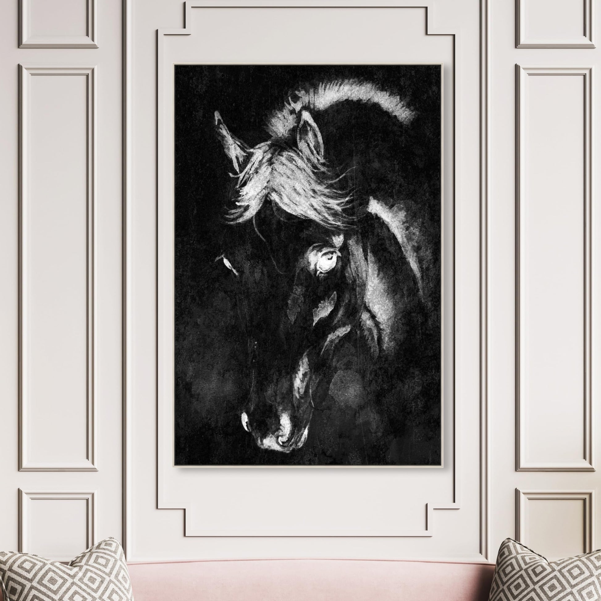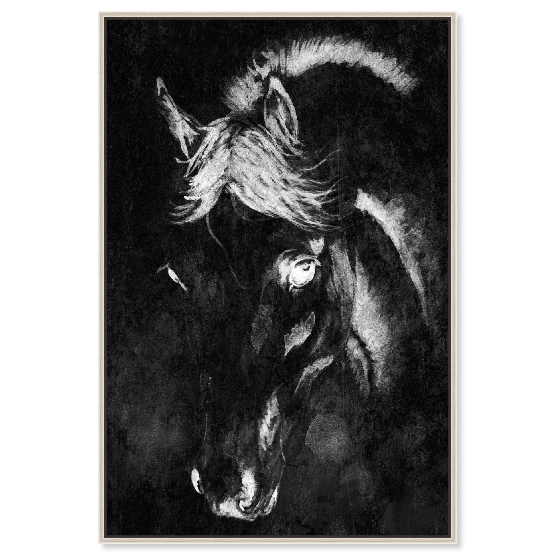 Country Farmhouse Canvas Print Painting Animal Wall Art 'Black Beauty Horse Art' White Framed Canvas Rustic Home Décor 20x30 in Black, White by Oliver Gal