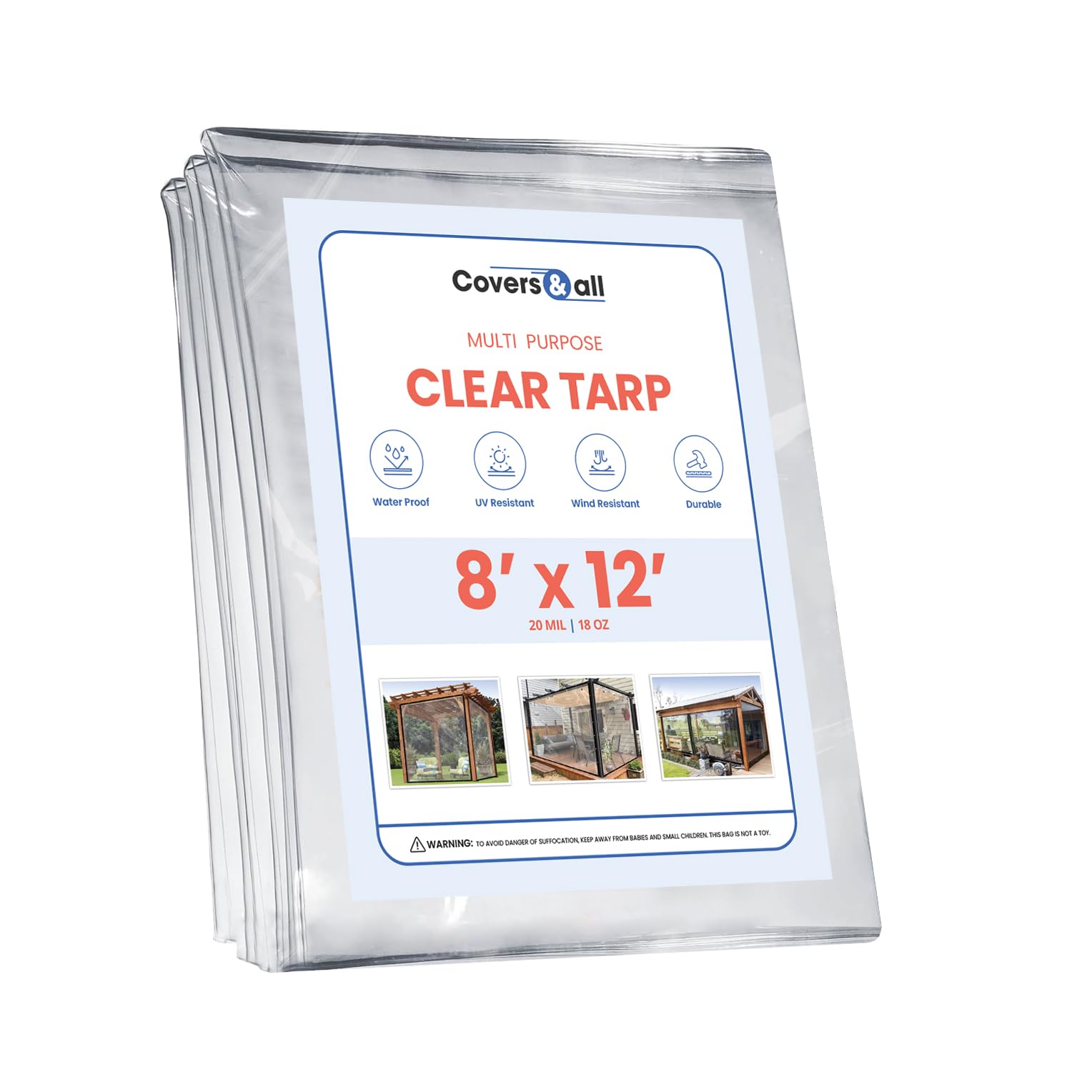 Covers & all Clear Tarp Heavy Duty Waterproof, 20mil Clear Tarp with Grommets, Outdoor Tarp for Patio Covers, Porch Screens, Greenhouses, Chicken Coop (8' H x 12' W Feet), Indoor or Outdoor Use
