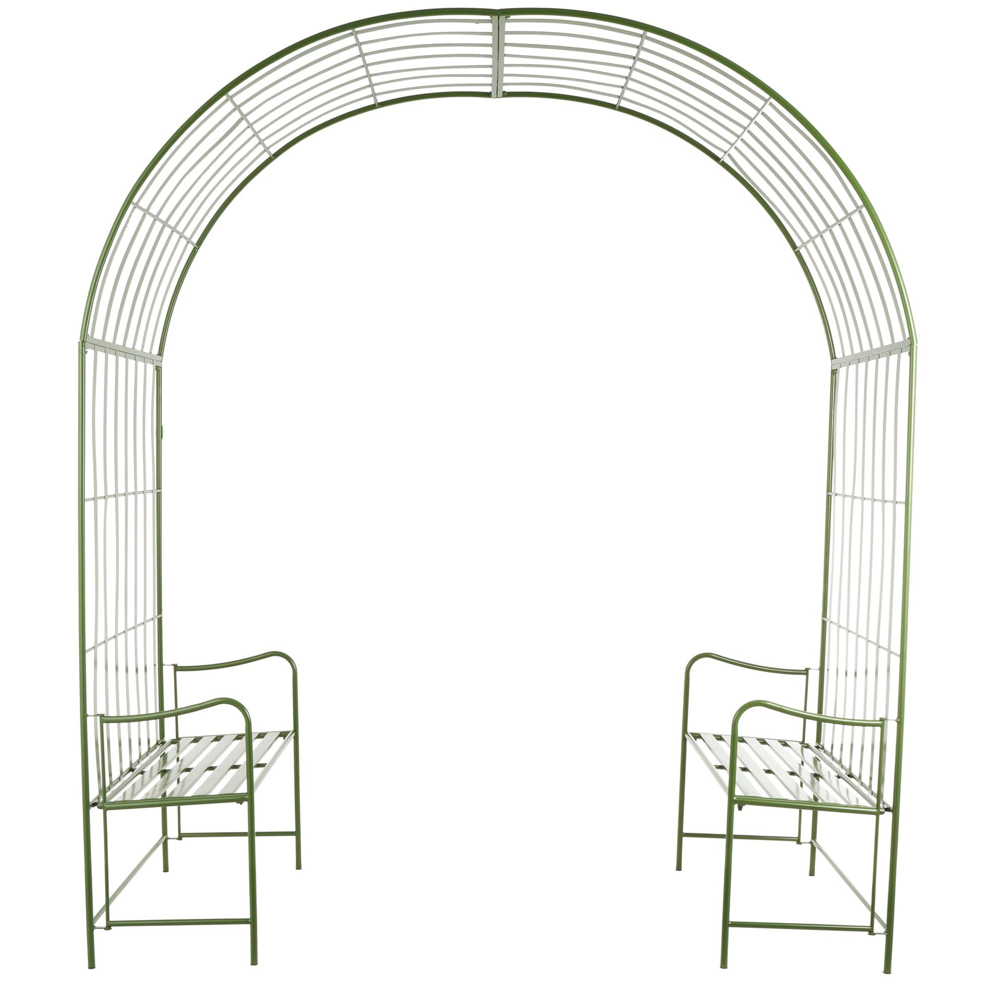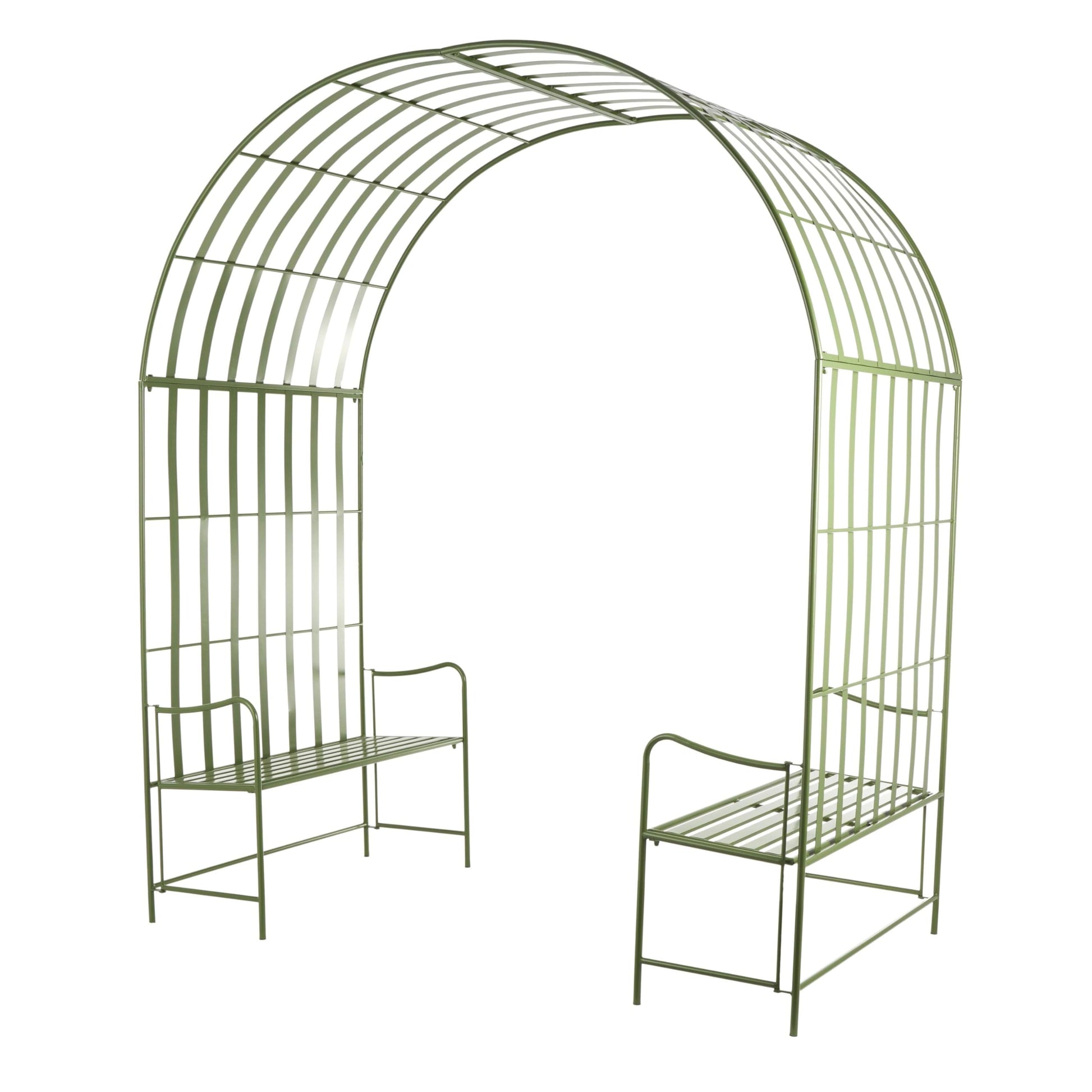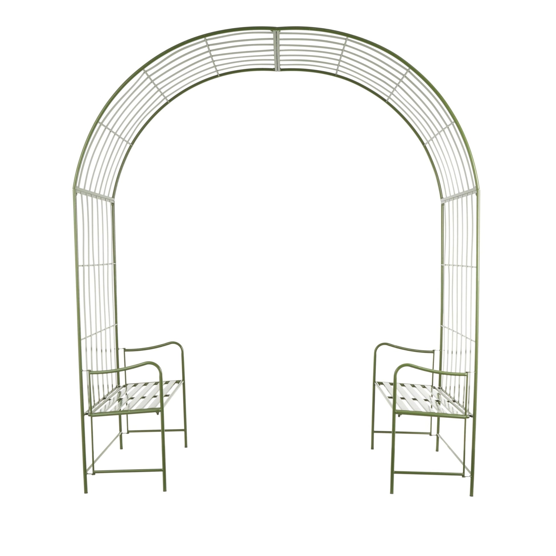 ARCHED : Large metal arbor comes with two attached benches with armrests, providing functionality and an impactful look in your outdoor space