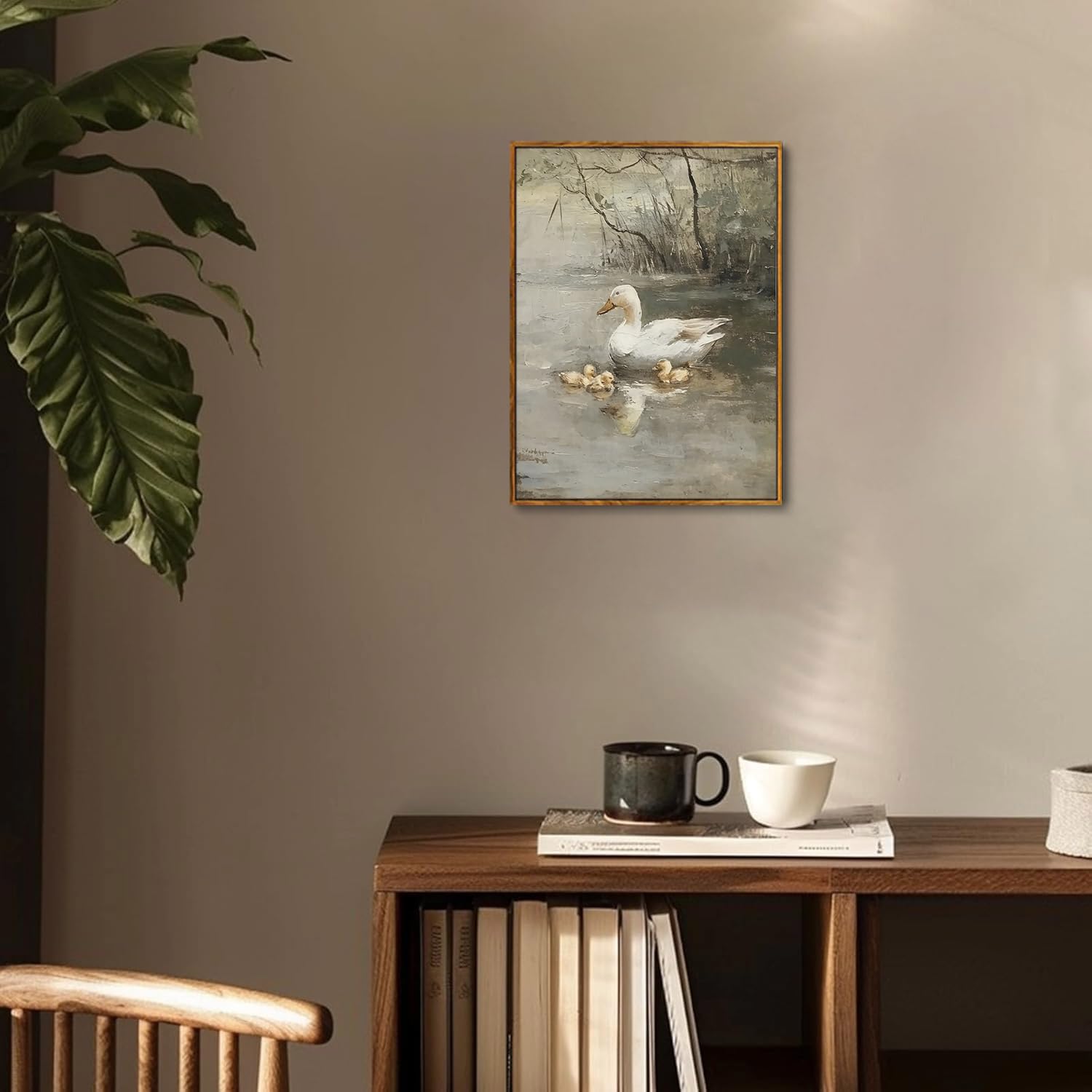 Djmwtb Vintage Framed Wall Art Duck Canvas Wall Art Prints Rustic Farmhouse Painting Nature Pictures Artwork for Living Room Bedroom Bathroom Office 12x16in