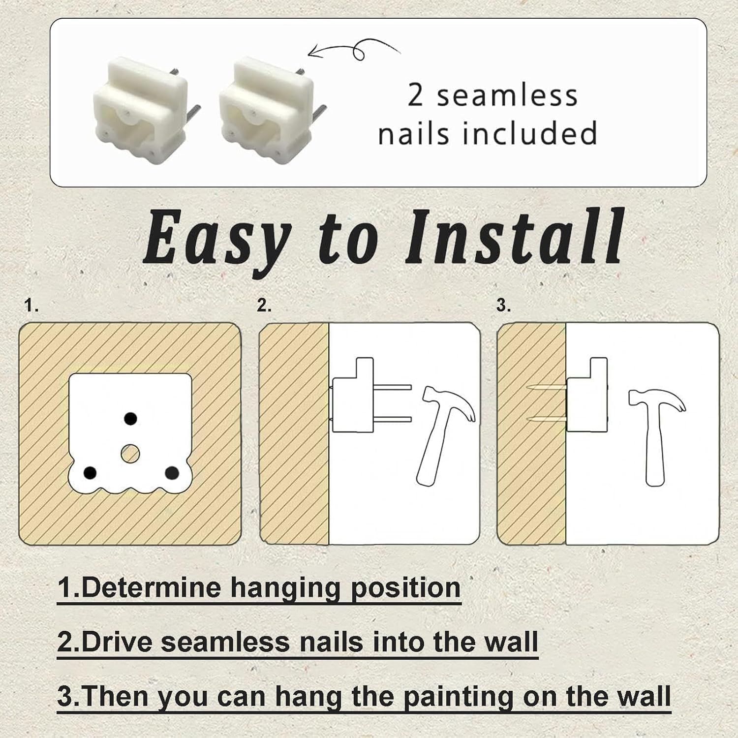 Ready To Hang:This framed canvas wall art comes with easy-to-install, damage-resistant nails, allowing you to easily hang the art without leaving marks on the wall. Easy installation and convenient hanging.