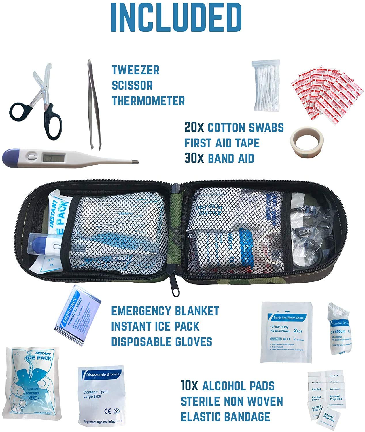 HIGH QUALITY DOG FIRST AID KIT: Deluxe Dog First Aid Kit was planned and designed with the contribution from pet owners with more than 50 combined years of experience. Our pack contains the things you need to be prepared for your pet's injuries they got while climbing, at the puppy park, tracing, hiking and hunting, or inappropriate eating. The electric thermometer is a must to know the severity of the situation.