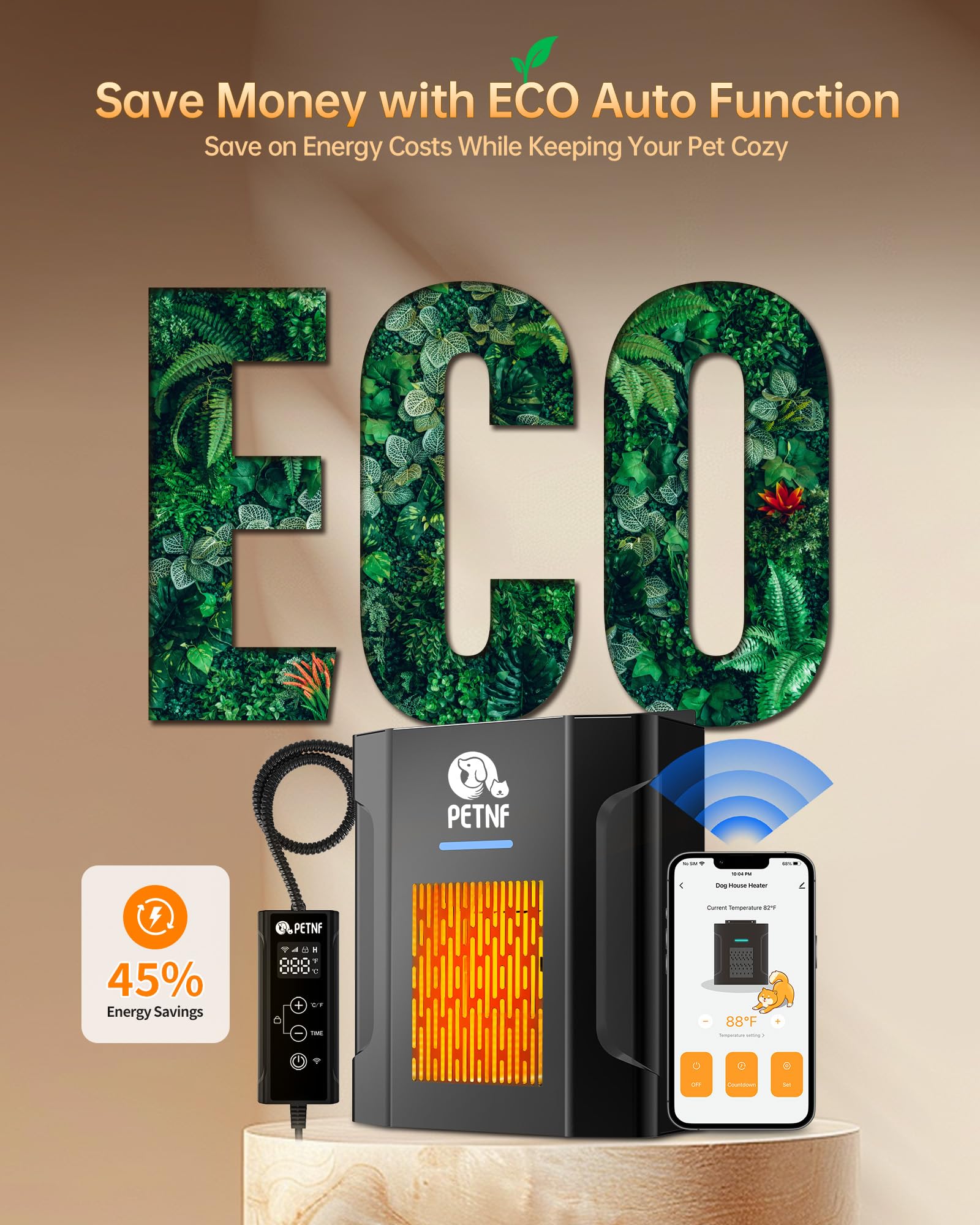 - Energy Saving ECO Mode: Unlike traditional outdoor heaters, this model includes ECO functionality that automatically adjusts heating cycles. By switching on and off intelligently, it reduces energy waste and saves on electricity bills. Tested to last over 10 years with 100,000 switch cycles, the heater is not only durable but also a sustainable choice for households wanting to balance pet care comfort with energy-efficient solutions, ideal for long-term use across multiple cold seasons