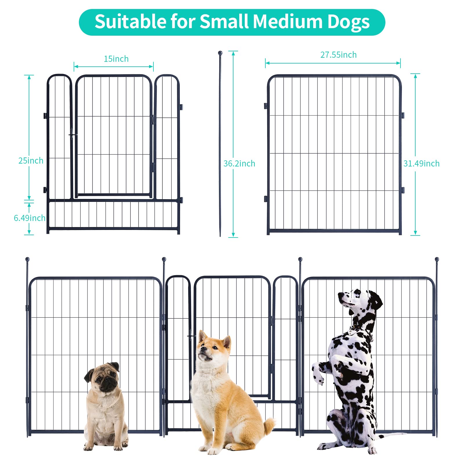 【Dimensions】medium dogs dog playpen size 32 inches X 28.5 inches (H X W), Panel wire spacing is 1.5 inches, Each Panel weight is 4.25 lbs, with door for easy pet access.