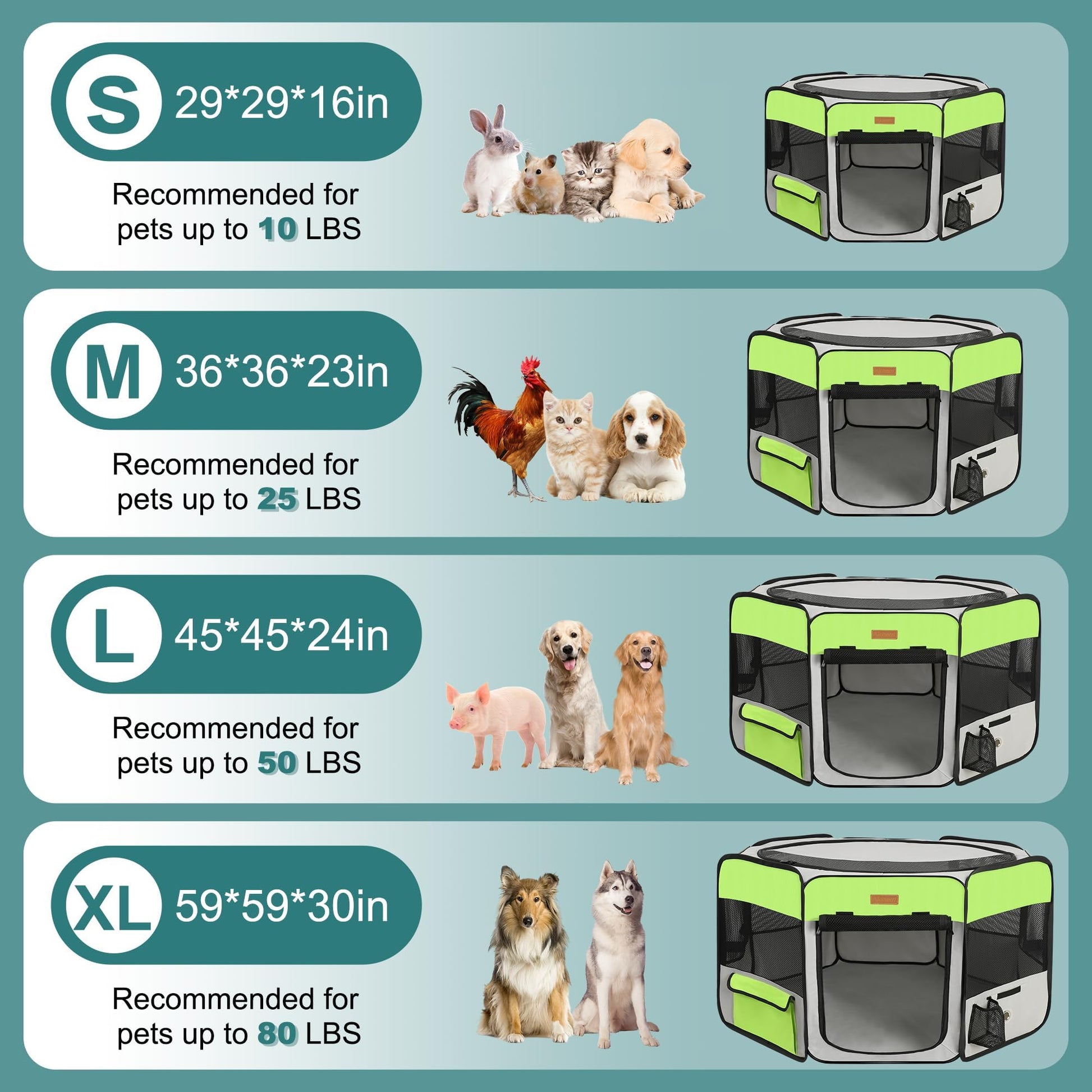 【4 SIZES FOR MOST PETS】▶▶▶Small-29x29x16in;Medium-36x36x23in;Large-45x45x24in;X-Large-59x59x30in.Please allow 1-2in error. Suitable for cats, dogs, puppies, kittens, rabbits, chickens, ferrets, hamsters, guinea pigs and pregnant pets, etc.Please measure your pet's size and choose the right size before you buy