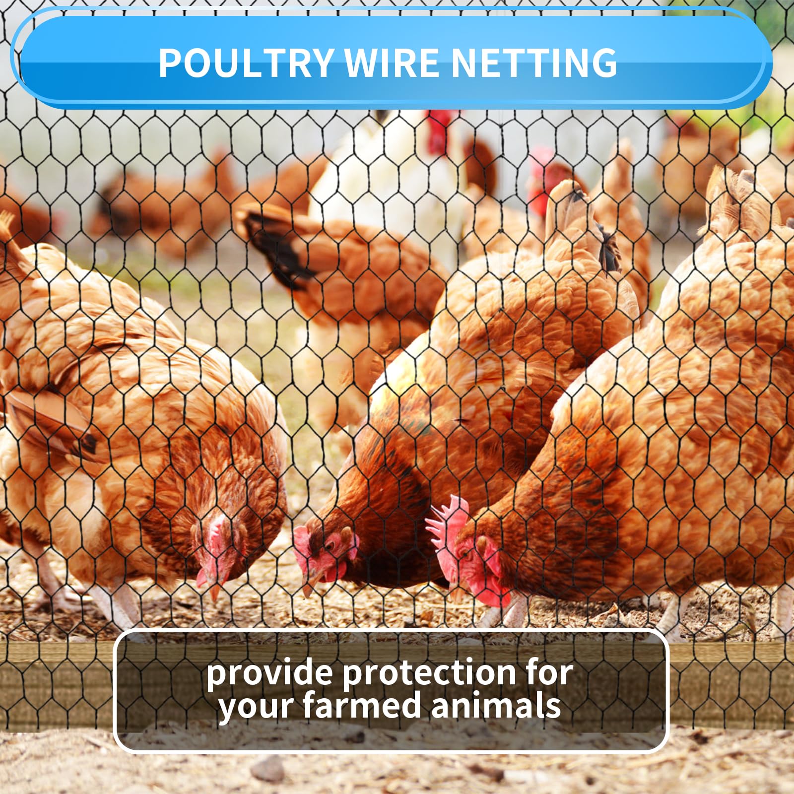 » » Multi-functional Application: The multi-functional design of black hexagonal wire mesh makes it suitable for a variety of places and uses.It can be used as a fence for farmland, orchards, gardens, etc.It is lightweight and easy shaping , perfect for DIY projects in various shapes.In addition, it can also be used to make animal cages, breeding equipment, flower racks, etc,to meet the needs of different users.