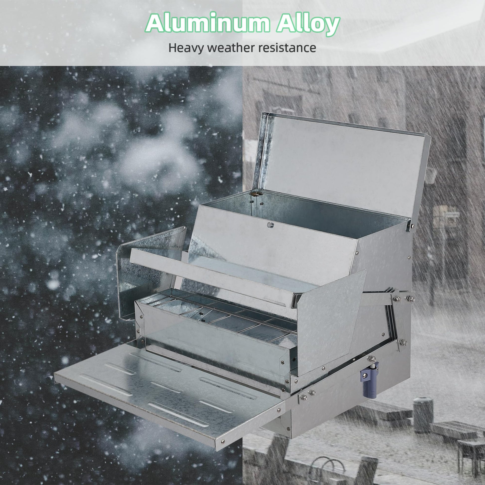 • ใ€๐ƒ๐ฎ๐ซ๐š๐›๐ฅ๐ž ๐ƒ๐ž๐ฌ๐ข๐ ๐งใ€‘Domenow Chicken Treadle Feeder stand out with their robust aluminum alloy steel finish, ensuring longevity even in outdoor conditions. Our chicken coop feeder is built to endure scorching sun, rainstorms, and snowfall.