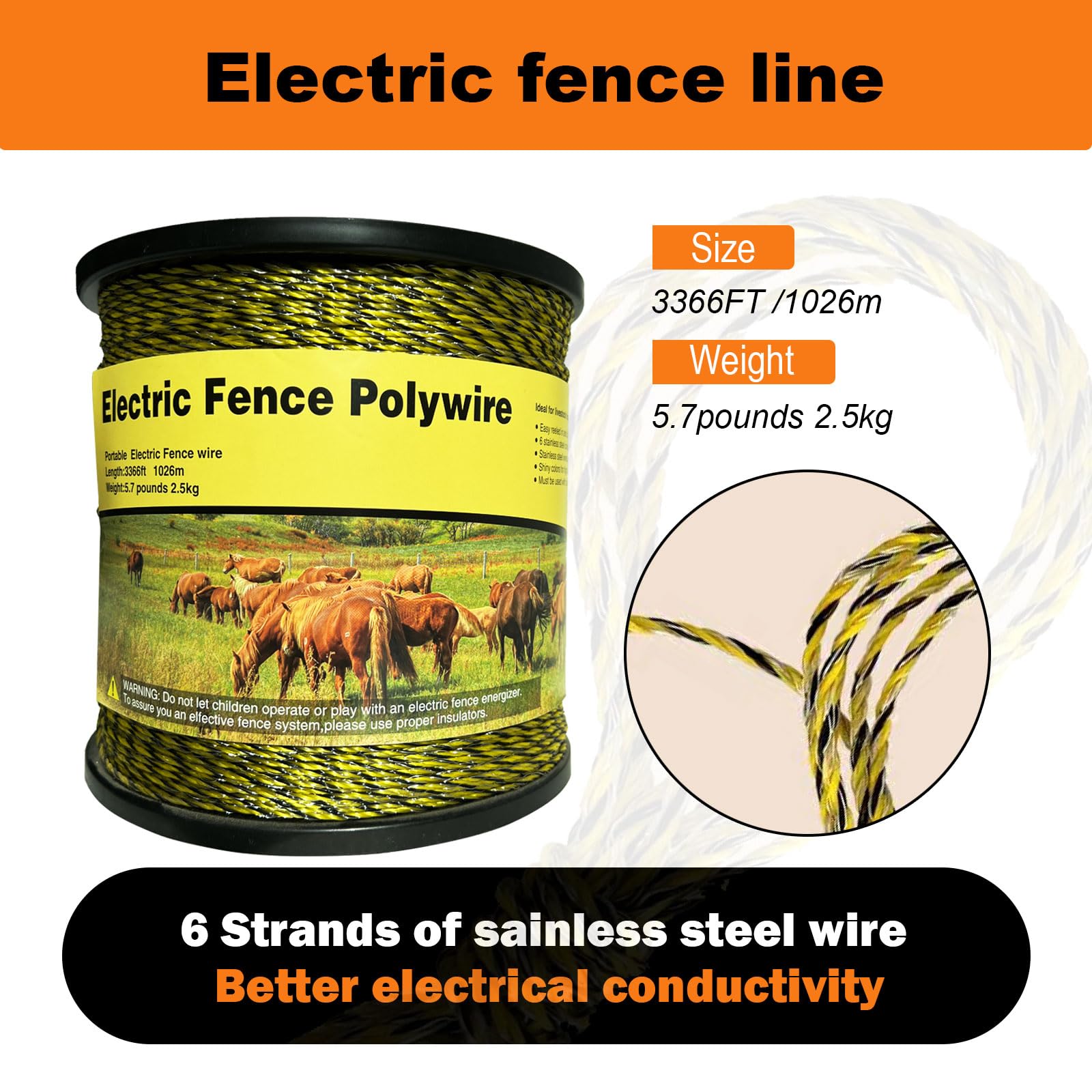 〖 Quality material Upgraded Electric Fence Polywire〗:This Electric Fence Polywire upgrade to 1/8" diameter polywire, consists of 6 inter-woven stainless steel strands of electrical conductors and30 nylon multiple strands, which provides lower resistance and reliable conductivity. Up to 3366 feet (1026meters) spool of polywires,solution for all your electric fencing needs