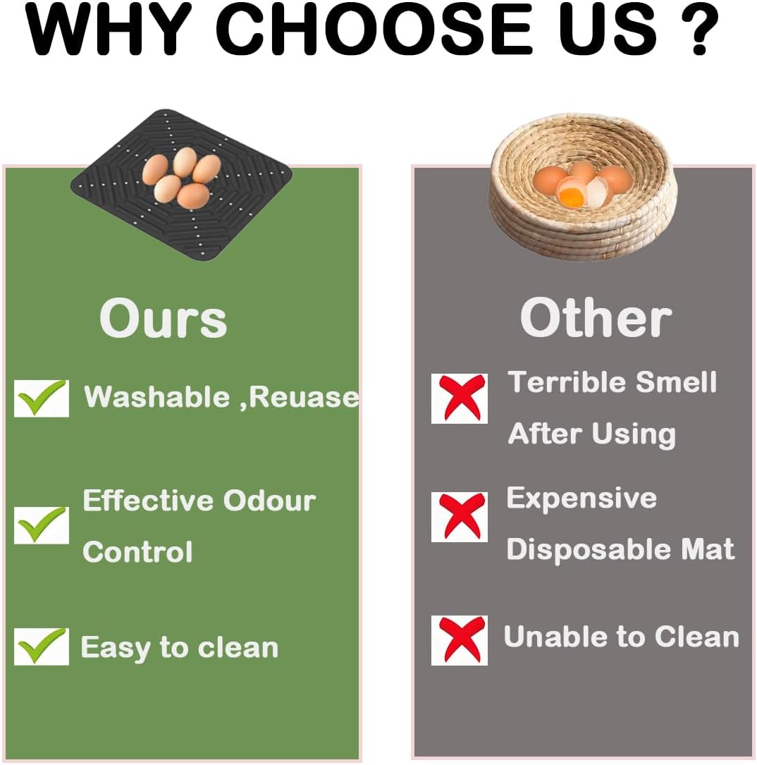 30-Second Setup & Maintenance- Anti-slip flanges secure pads in 2 clicks; Waterproof surface wipes clean in seconds; Hose-ready drainage holes prevent liquid pooling (Pro Tip: Add pine shavings for extra hen comfort)