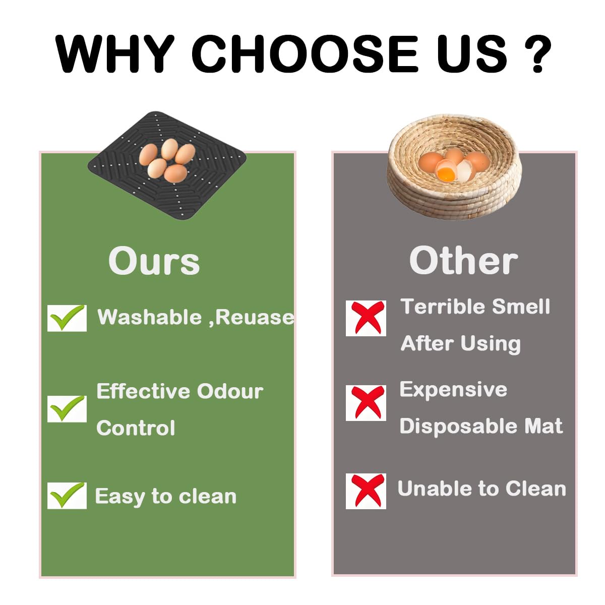 Prevent Egg Breakage & Simplify Cleaning- Premium non-toxic plastic construction with breathable holes prevents moisture buildup while allowing waste to fall through; Raised edges and textured surface cushion eggs like natural straw bedding; Leakproof base keeps nesting box hygienic (No more cracked eggs or messy cleanups!)