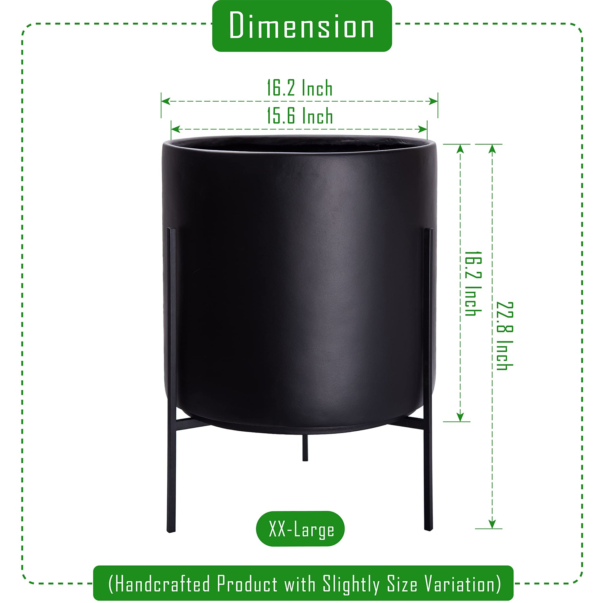 XX-Large Pot with Stand Set: Planter size: 16.2 inch; pot inner diameter 15.6 inch; pot with stand total height: 22.8 inch.