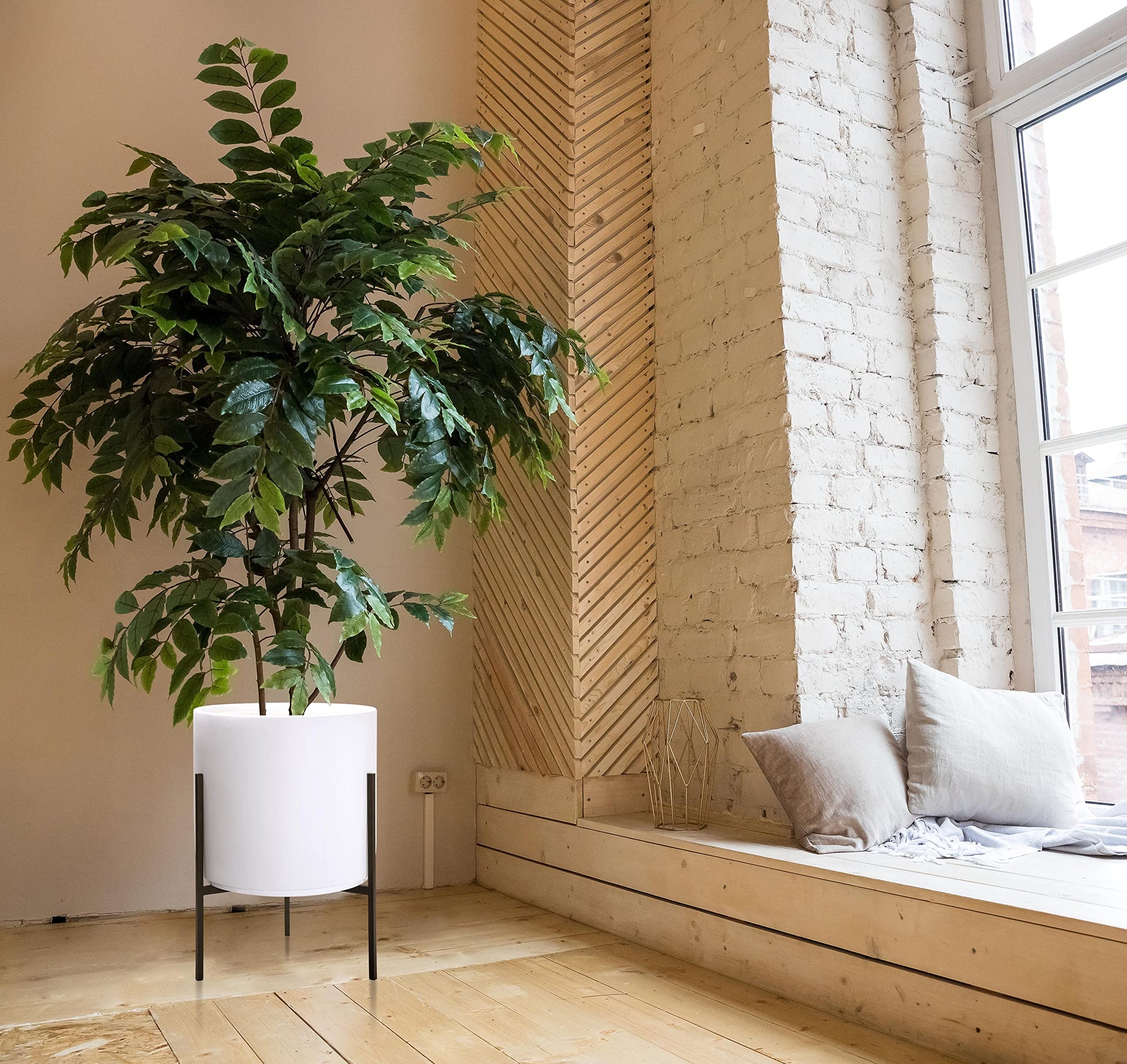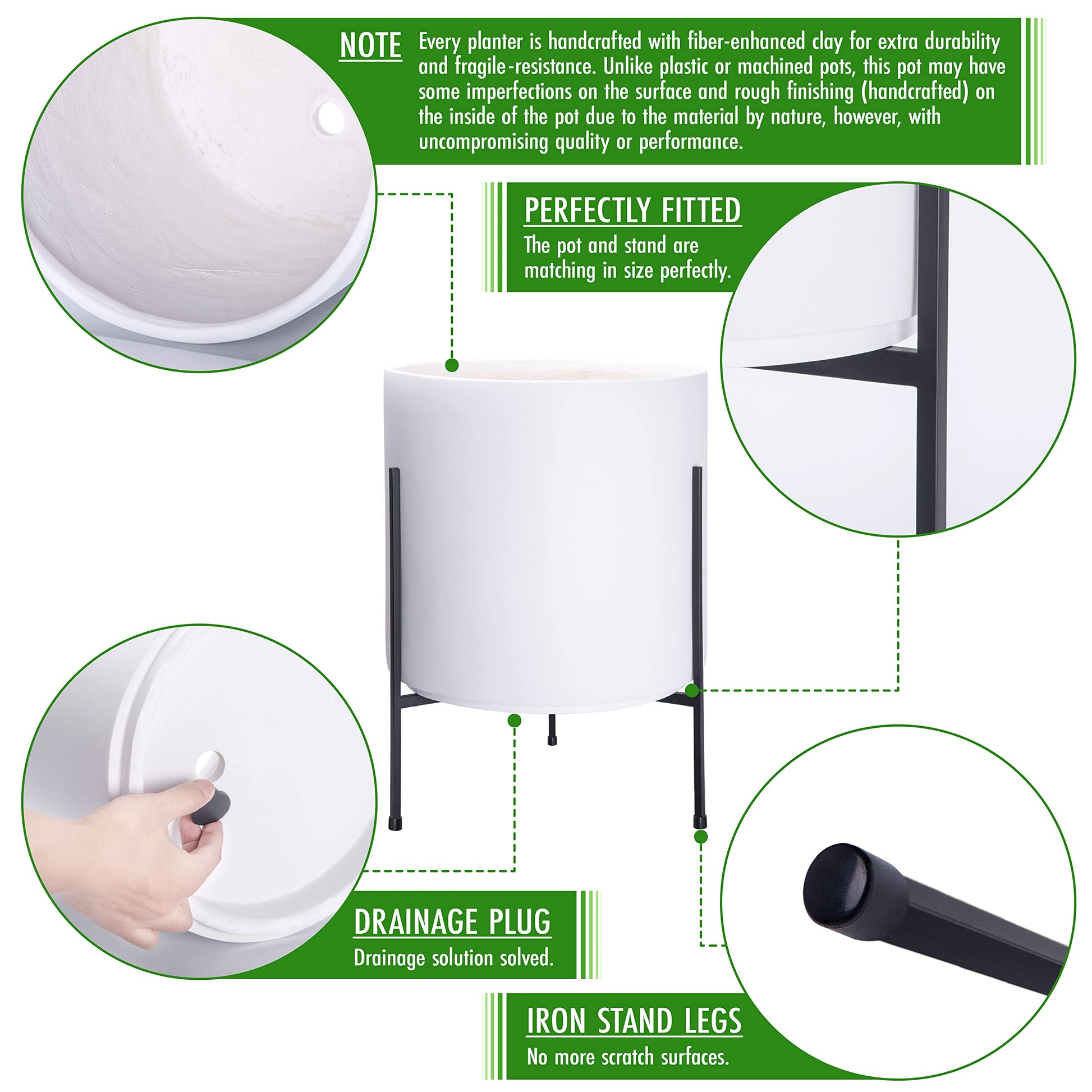 - Handcrafted Fiber Clay Planter: The planter is handcrafted from fiber clay and has a modern round white pot design.