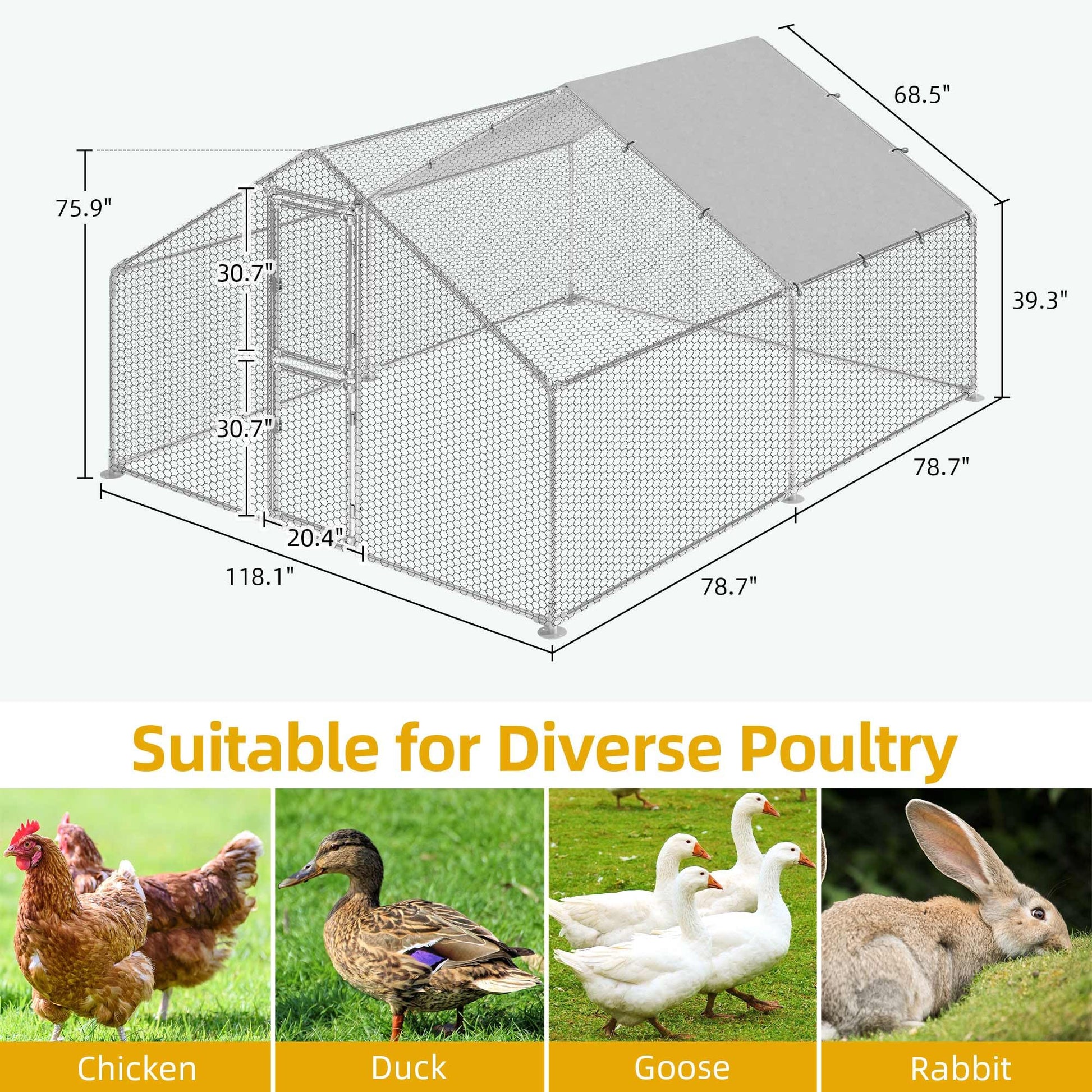 Rust-Resistant & Sturdy Structure - Crafted from high-grade galvanized steel pipe, DWVO metal chicken coop ensures long-lasting durability without rust concerns. Thicker 1-inch diameter steel frame makes the walk in chicken coop sturdy and stable in high winds and heavy rain.