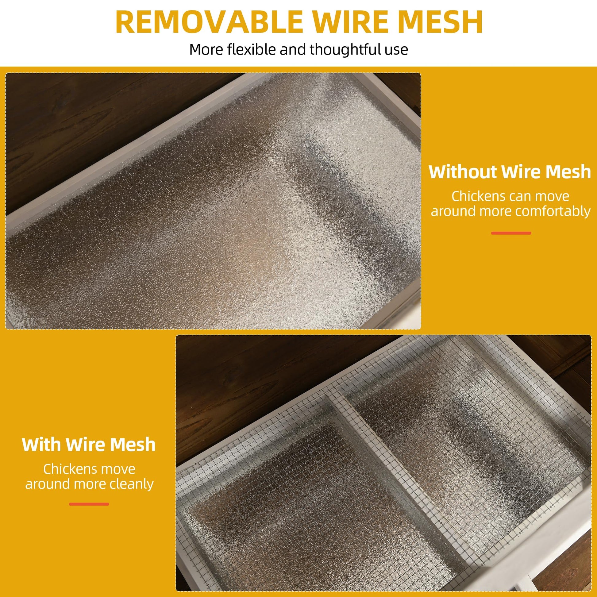 Easy-Clean Removable Tray: Deep slide-out droppings tray & detachable heavy-duty wire mesh floor. Separates chickens from waste for a cleaner, healthier flock
