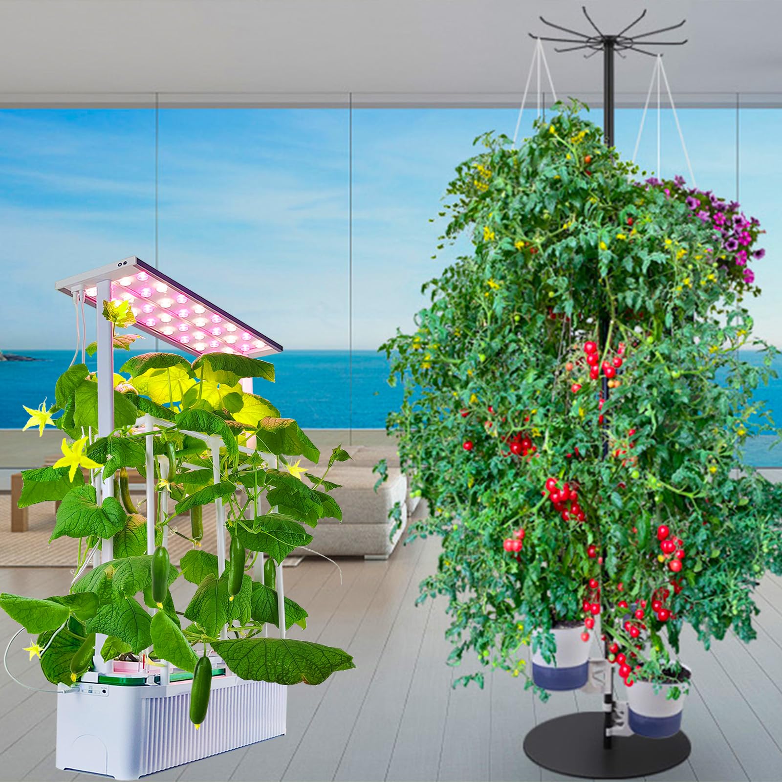 E SUPEREGROW Large Hydroponics Growing System kit + DIY Hydroponics Growing System Tower Garden