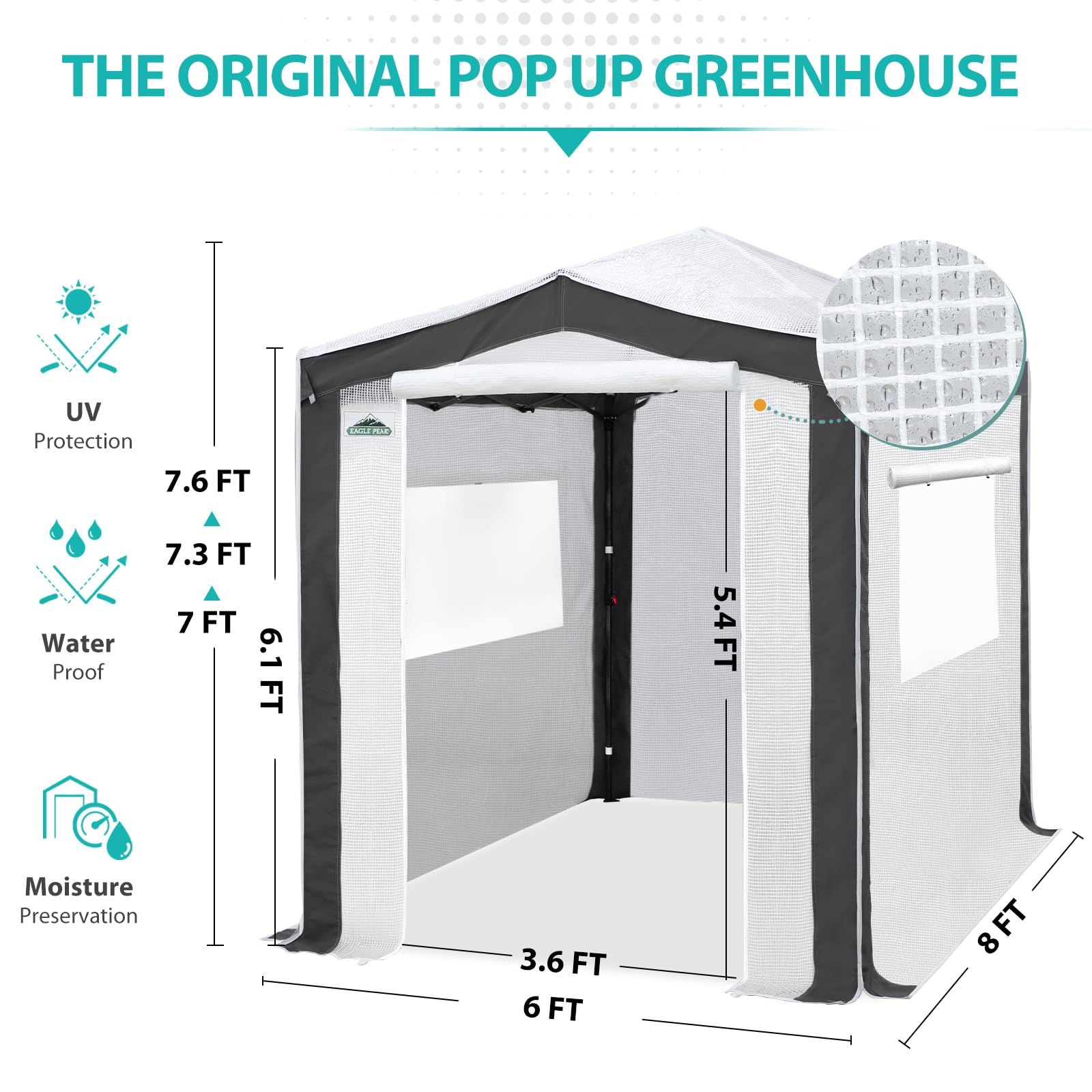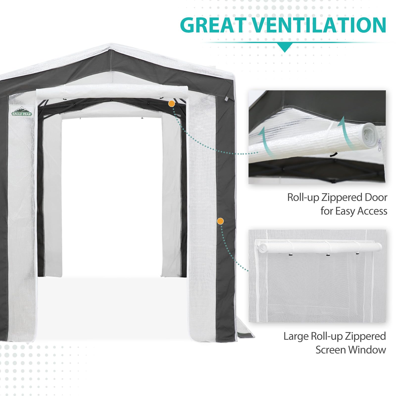 EAGLE PEAK 8x6 Portable Walk in Greenhouse with Polyester Reinforced Corners, Instant Pop Up Indoor Outdoor Gardening Green House, Roll Up Zipper Entry Doors and Mesh Windows, Gray/White